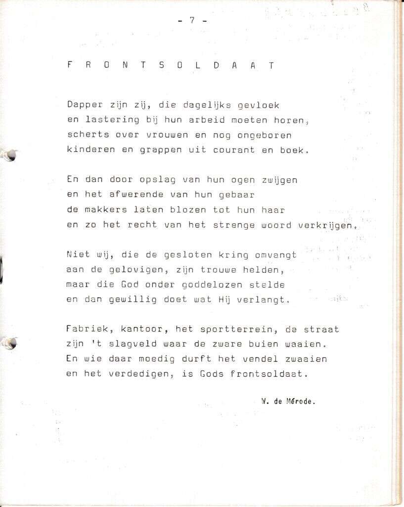 Beschrijving:It Fleurige Flittergat: 2de jaargang nr. 4: Gedicht: Frontsoldaat door W.de Mérode