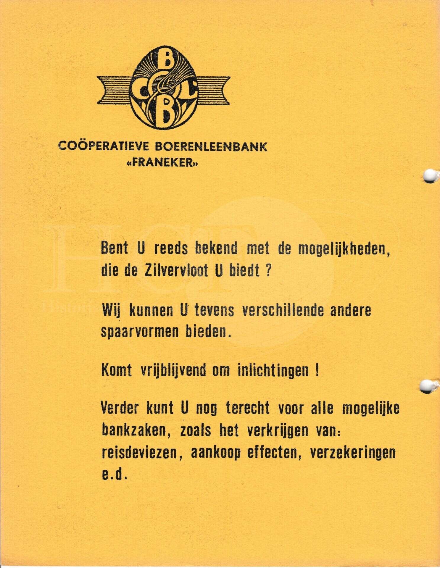 Beschrijving:It Fleurige Flittergat: 2de jaargang nr. 5: Reklame: Coöperatieve Boerenleenbank Franeker