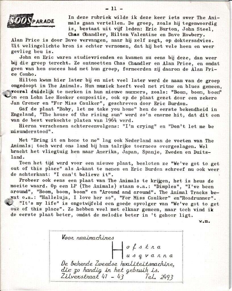 Beschrijving:It Fleurige Flittergat: 2de jaargang nr. 6: Sooosparade. Reklame; Hofstra naaimachines Zilverstraat 41,43