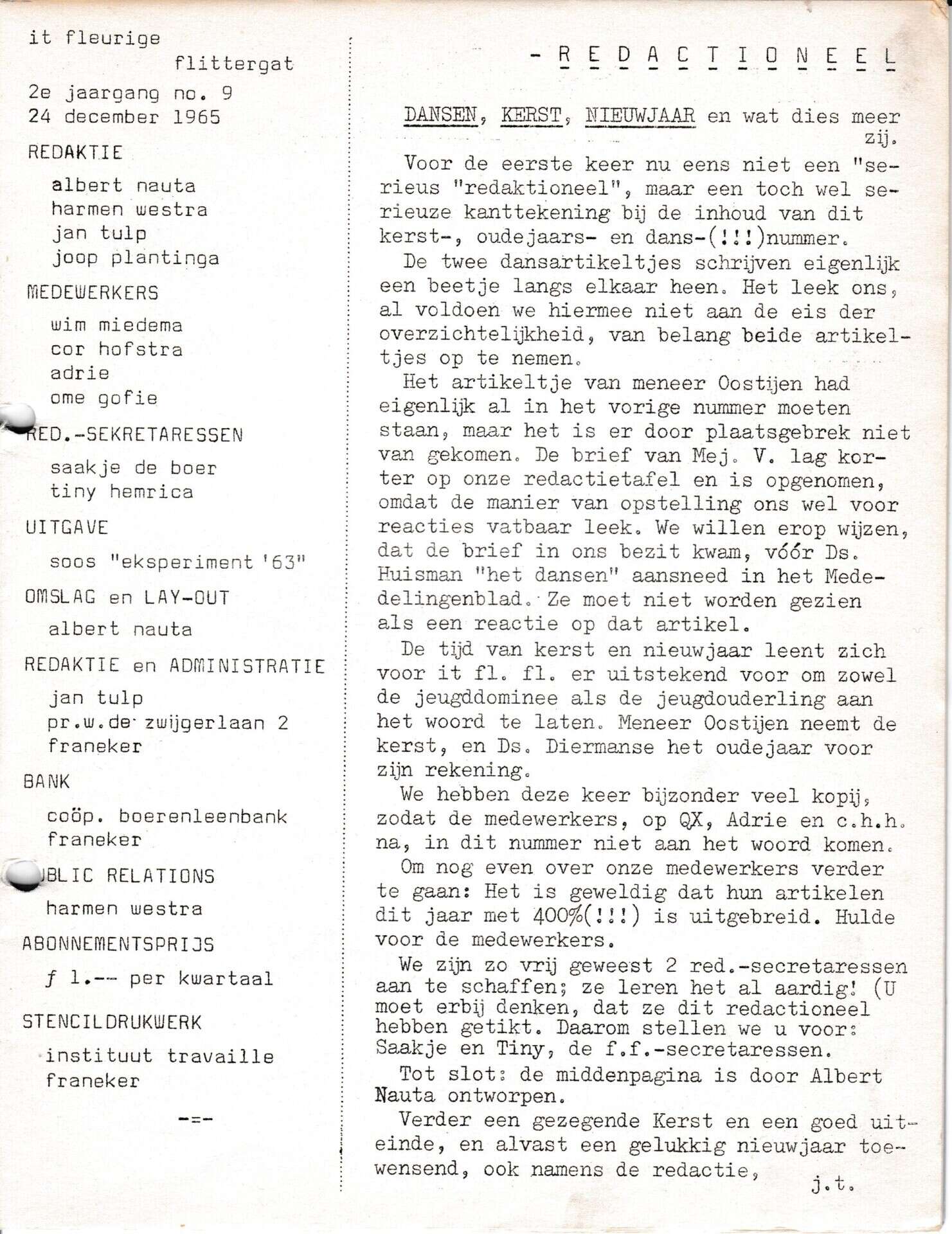 | Beschrijving: | It Fleurige Flittergat: 2de jaargang nr. 9: Redactioneel: Dansen, Kers en Nieuwjaar |
