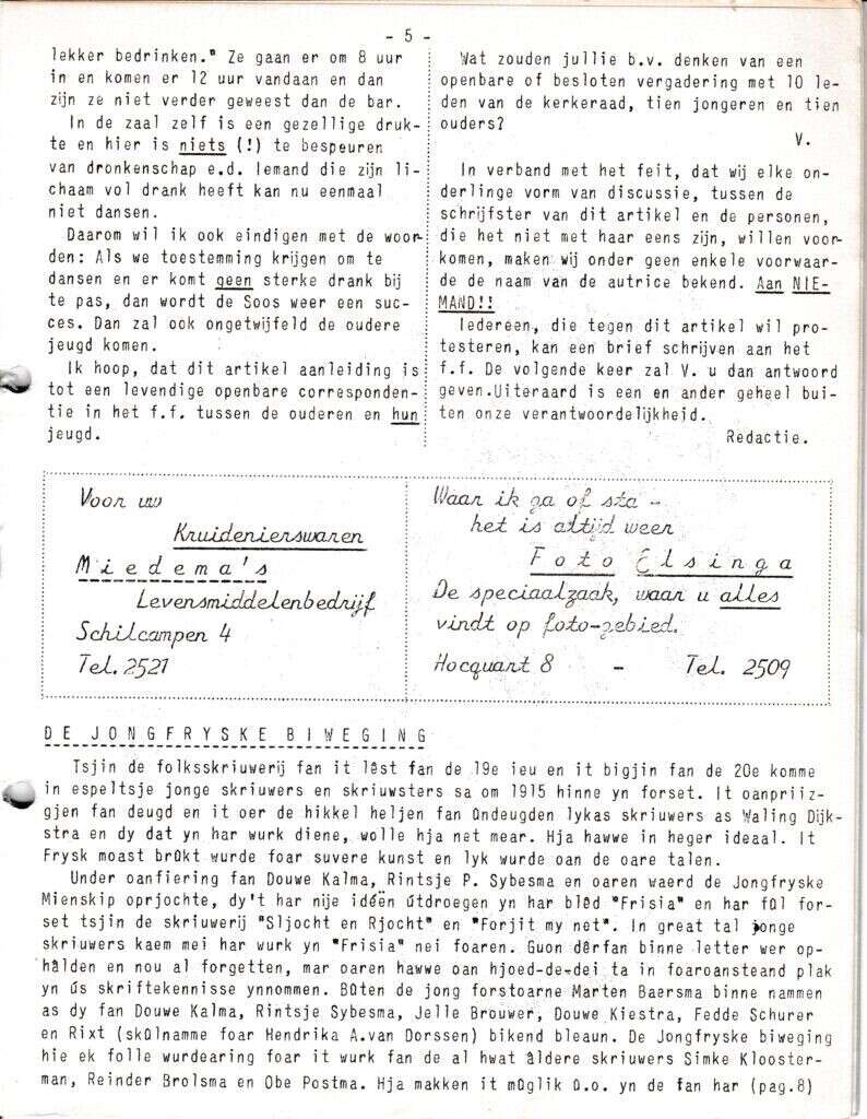 | Beschrijving: | It Fleurige Flittergat: 2de jaargang nr. 9: vervolg Brievenbus. Reklame; Miedema Kruidenier Schilcampen 4, Foto Elsinga Hocquart 8. De Jong Friesche beweging |