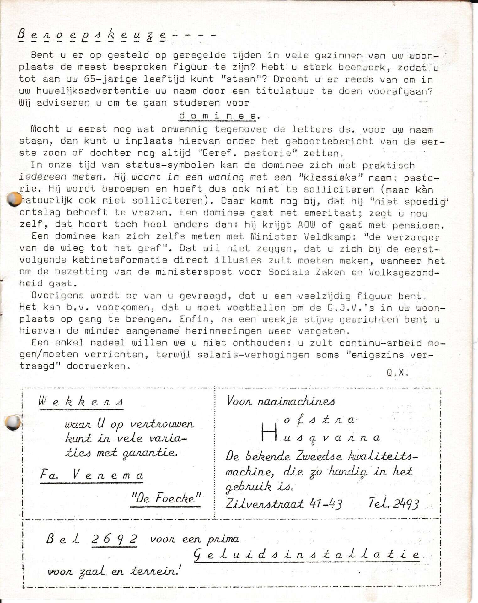 Beschrijving:It Fleurige Flittergat: 2de jaargang nr. 10: Beroepskeuze; Dominee. Reklame; Hofstra naaimachines Zilverstraat 41,43, Juwelier "De Foeke" Voorstraat 4