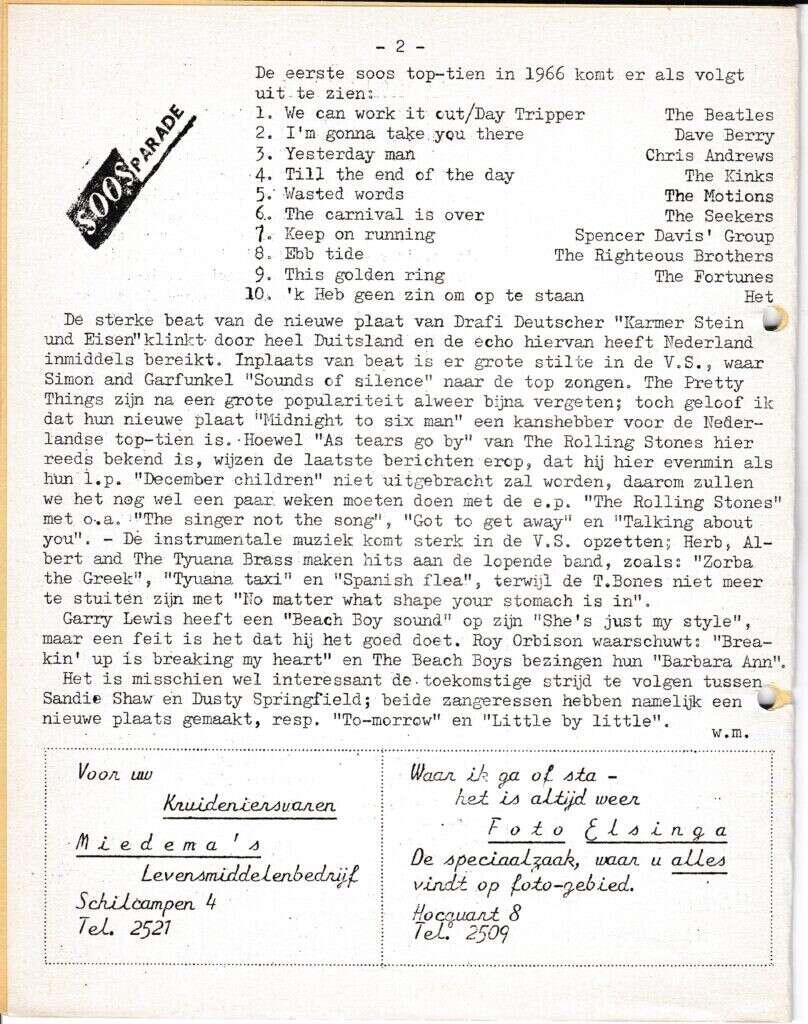 | Beschrijving: | It Fleurige Flittergat: 2de jaargang nr. 11: Soosparade. Reklame; Miedema Kruidenier Schilcampen 4, Foto Elsinga Hocquart 8. |