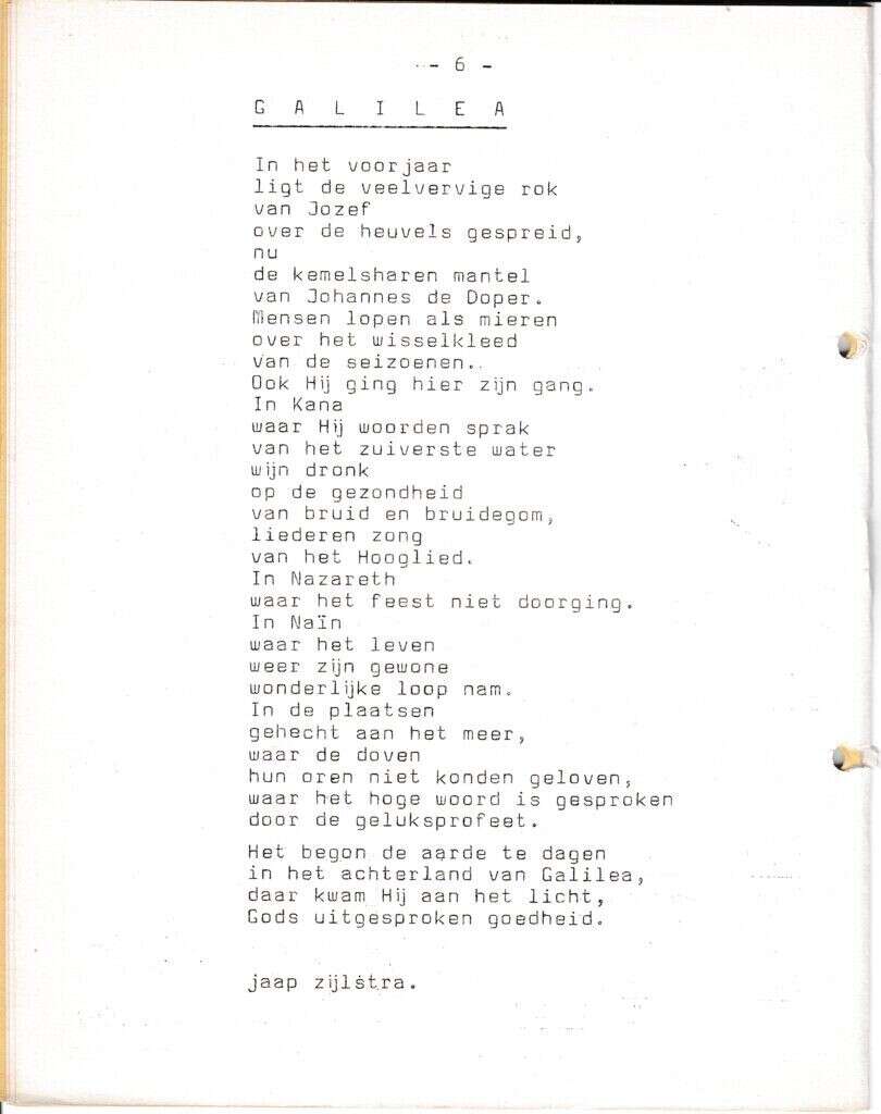 | Beschrijving: | It Fleurige Flittergat: 2de jaargang nr. 11: Gedicht: Galilea (Van Jaap Zeilstra) |