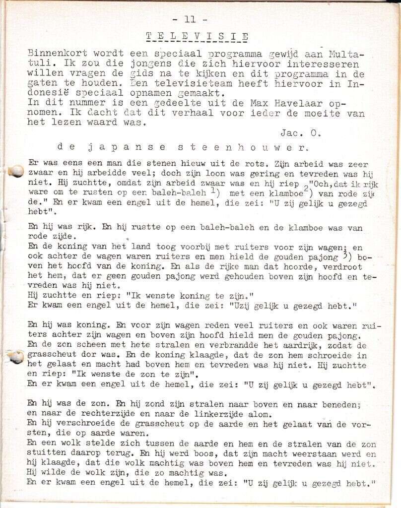 | Beschrijving: | It Fleurige Flittergat: 2de jaargang nr. 13: Televisie. Verhaal; Multituli: De Japanse steenhouwer |