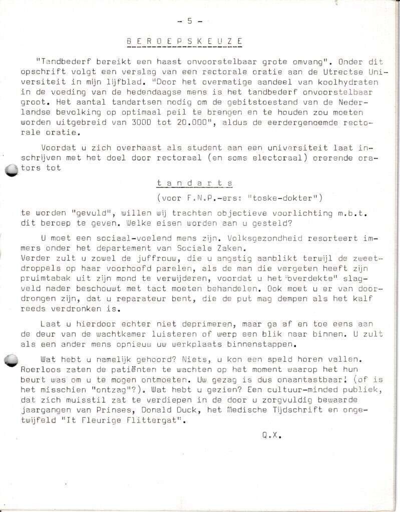 Beschrijving:It Fleurige Flittergat: 2de jaargang nr. 18: Beroepskeuze; Tandarts
