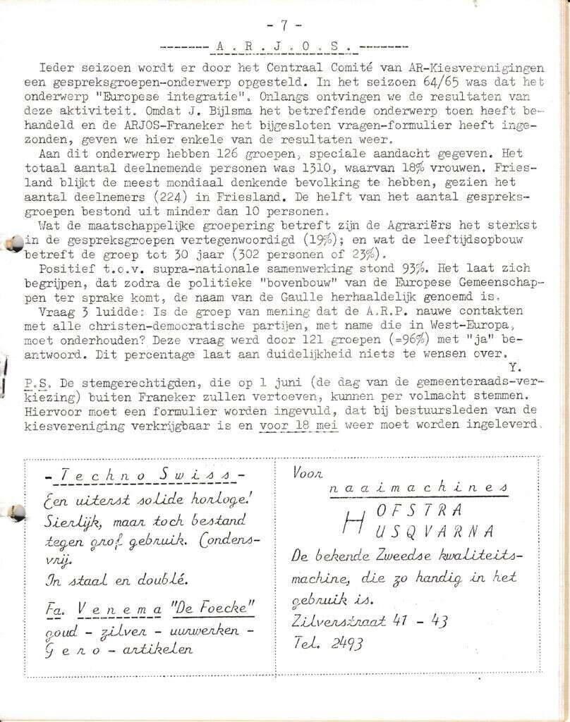 | Beschrijving: | It Fleurige Flittergat: 2de jaargang nr. 19: ARJO, Reklame; Hofstra naaimachines Zilverstraat 41,43, Juwelier "De Foeke" Voorstraat 4 |