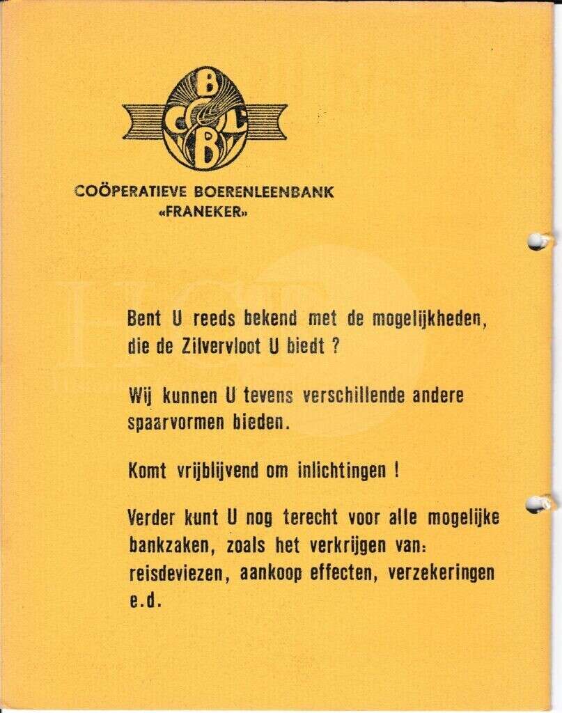 | Beschrijving: | It Fleurige Flittergat: 1966 2de jaargang nr. 20: Reklame: Coöperatieve Boerenleenbank Franeker |