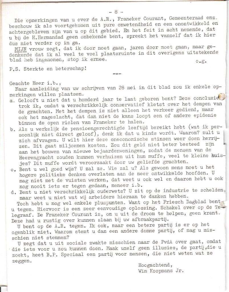 | Beschrijving: | It Fleurige Flittergat: 1966 2de jaargang nr. 21: vervolg Brievenbus; stadsontwikkeling, plus antwoord, Soosparade. |