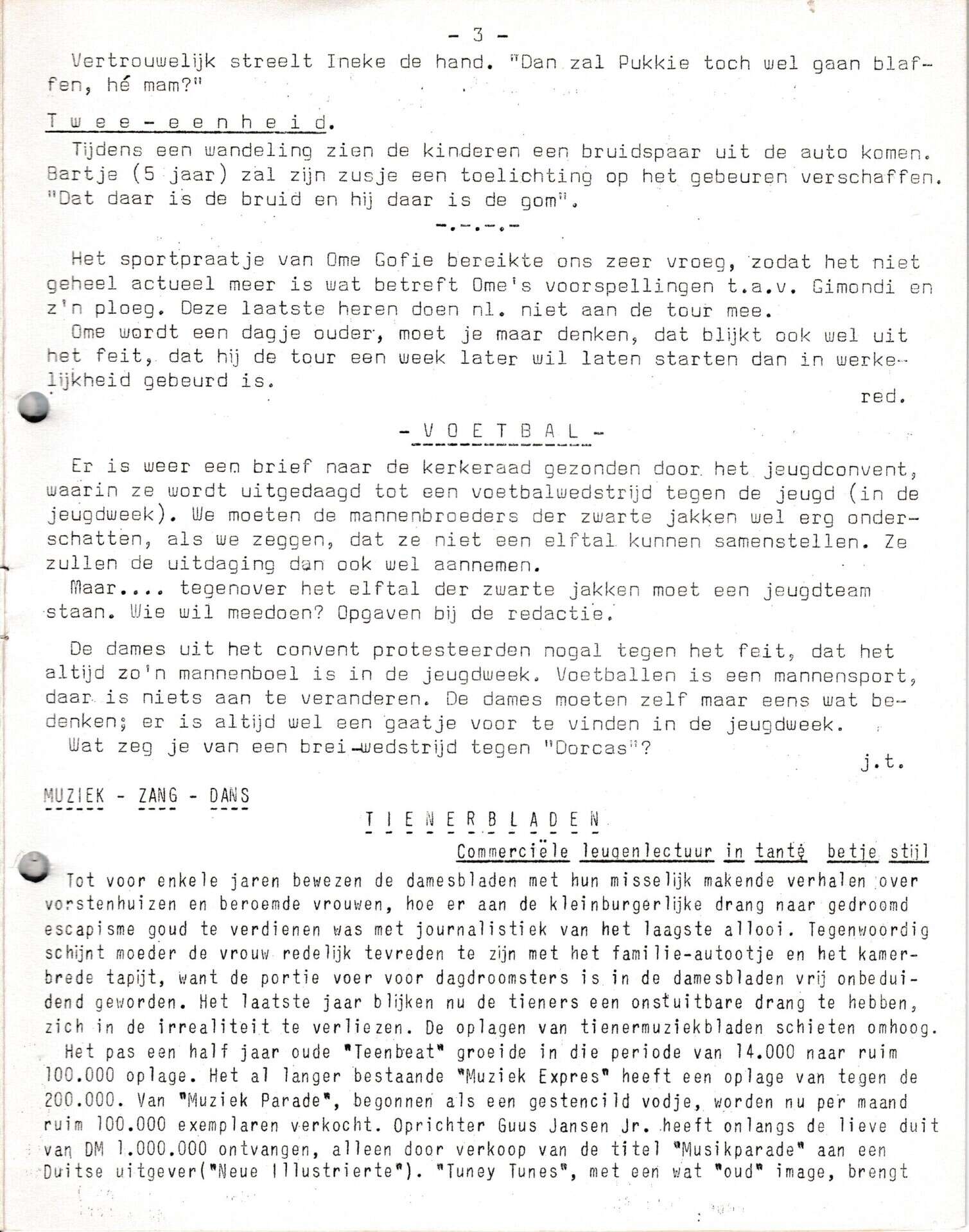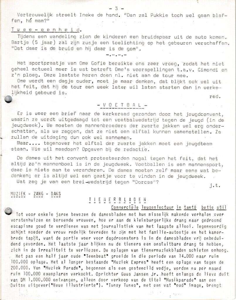 | Beschrijving: | It Fleurige Flittergat: 1966 2de jaargang nr. 22: vervolg Brul en Loei hoekje. Voetbal. Tienerbladen |
