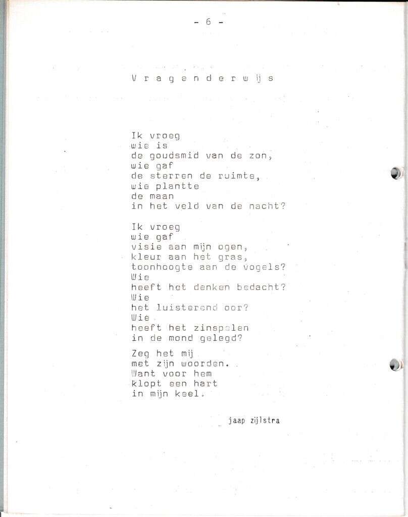 | Beschrijving: | It Fleurige Flittergat: 1966 2de jaargang nr. 22: Gedicht; Vragenderwijs van Jaap Zijlstra |