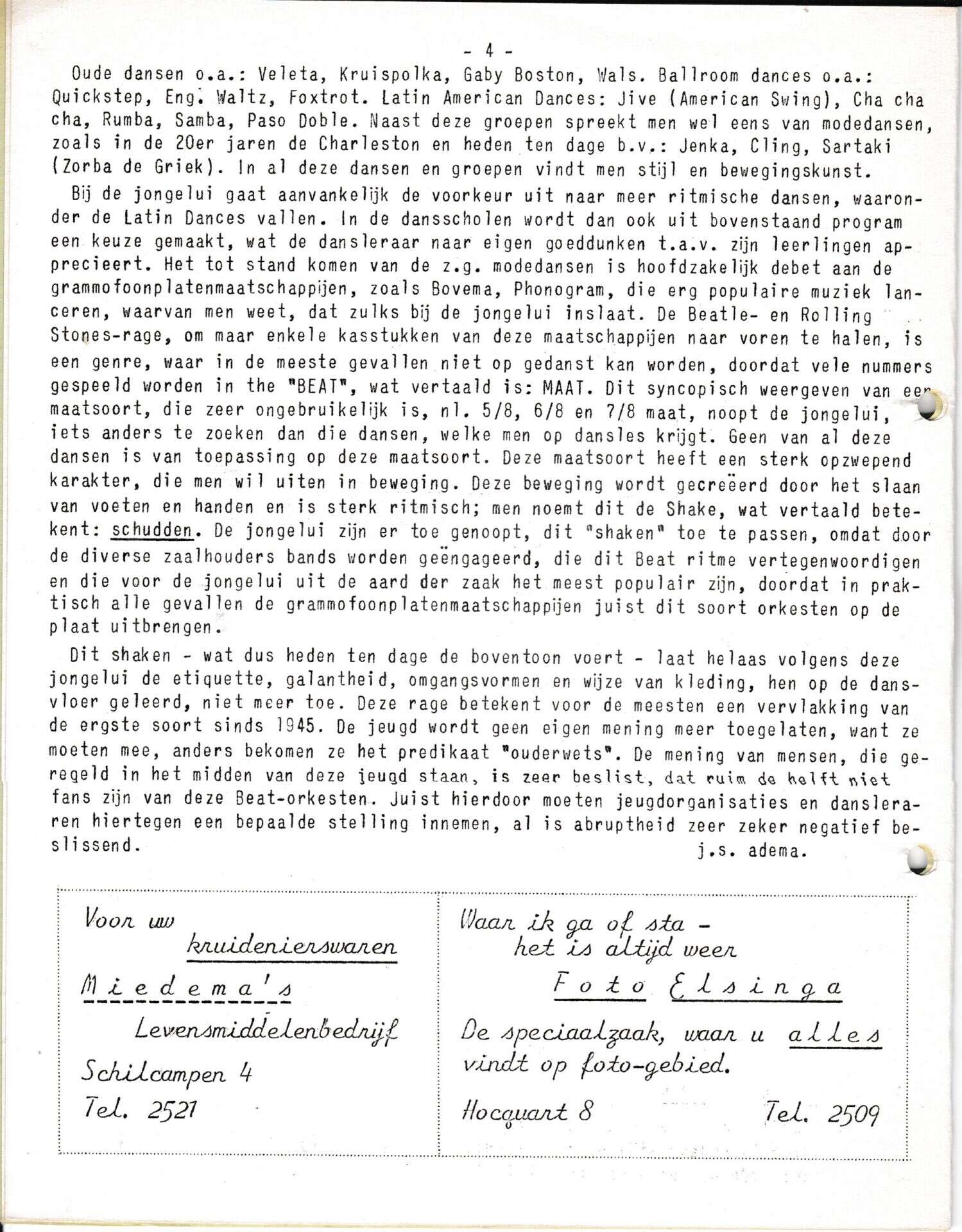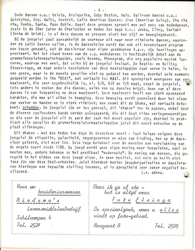 | Beschrijving: | It Fleurige Flittergat: 1966 2de jaargang nr. 23: vervolg Dansstijl, Reklame; Miedema Kruidenier Schilcampen 4, Foto Elsinga Hocquart 8, |