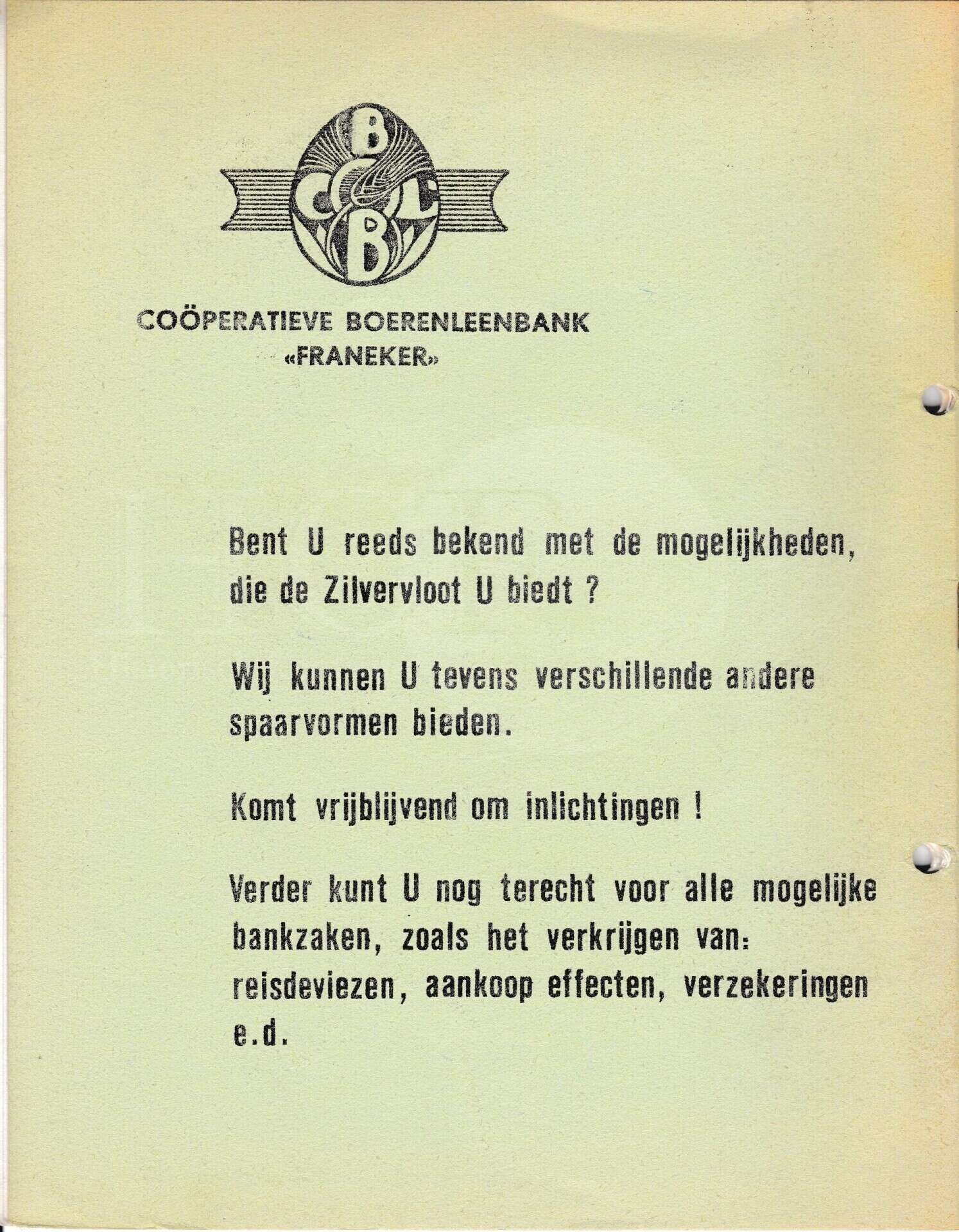 | Beschrijving: | It Fleurige Flittergat: 1966 2de jaargang nr. 23: Reklame: Coöperatieve Boerenleenbank Franeker |