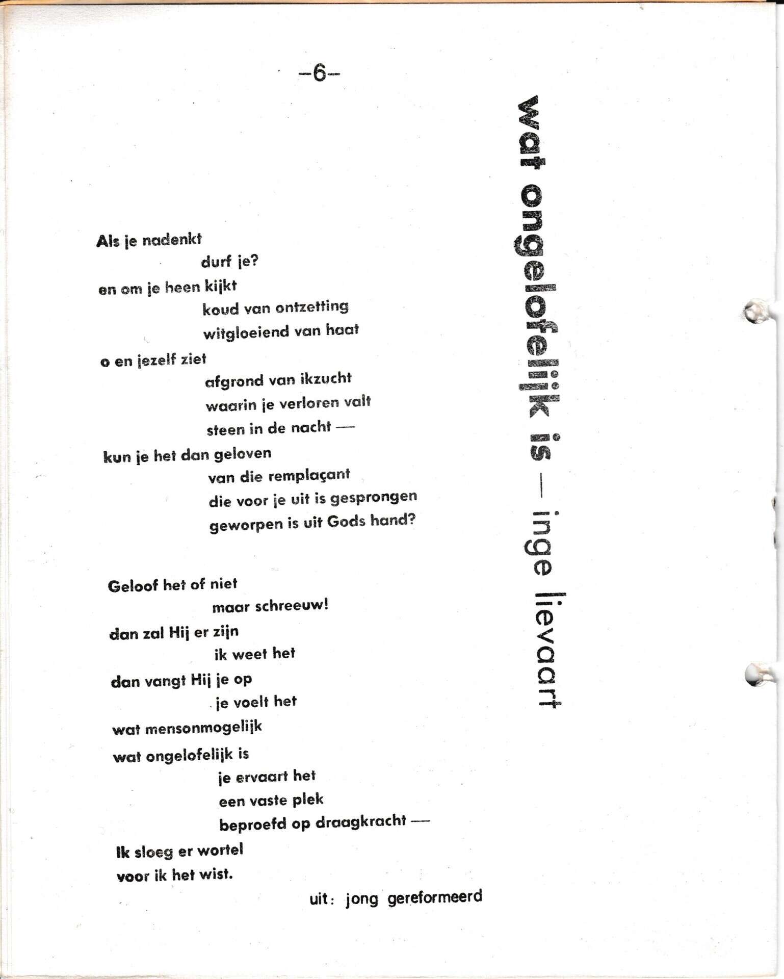 | Beschrijving: | It Fleurige Flittergat: 1966 3de jaargang nr. 0; Mededelingenblad; Gedicht; wat ongeloofelijk.. |