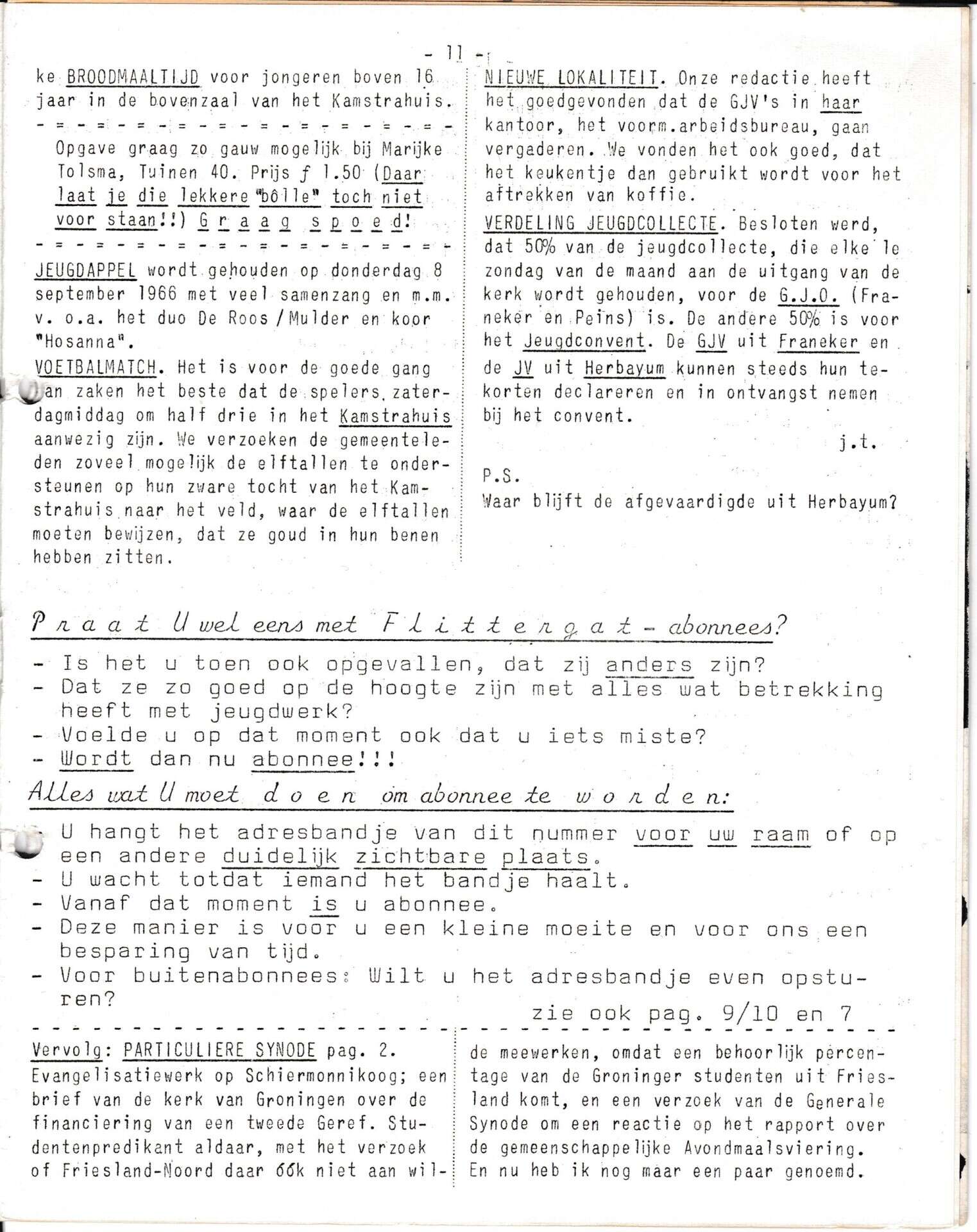 Beschrijving:It Fleurige Flittergat: 1966 3de jaargang nr. 0; Mededelingenblad; mededelingen, vervolg blz 2 Pariculiere Synode