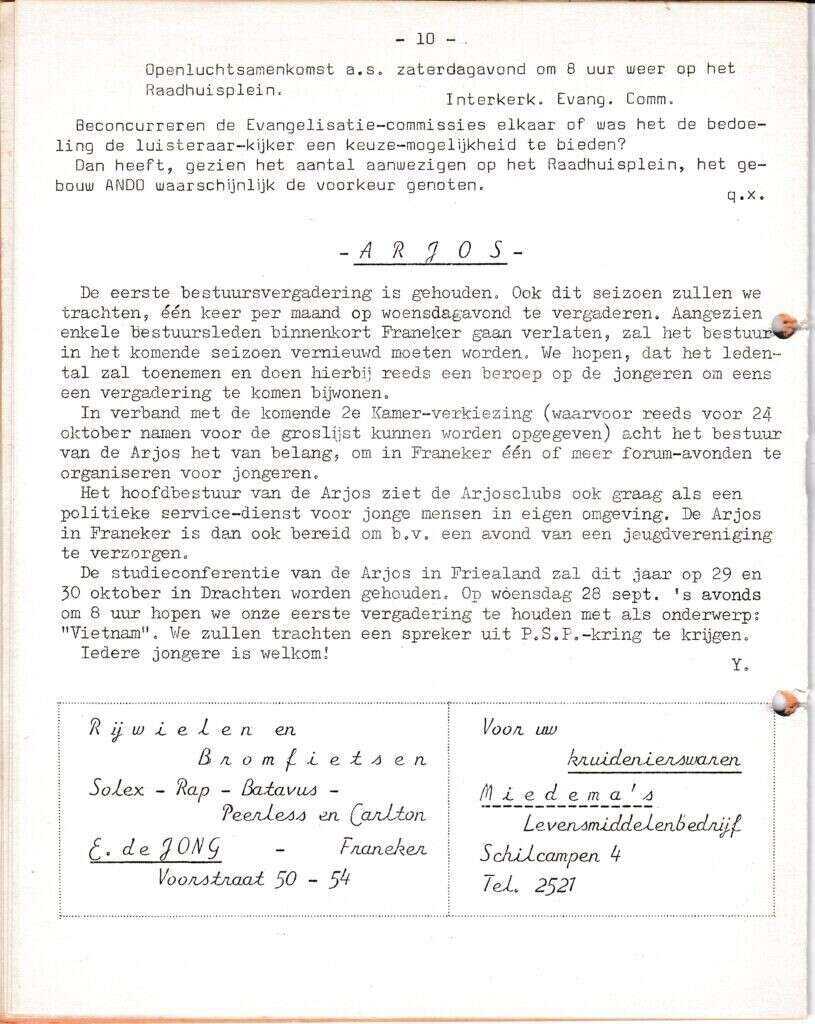 Beschrijving:It Fleurige Flittergat: 1966 3de jaargang nr. 1: ARJOS, Reklame; E.de Jong rijwielen en bromfietsen Voorstraat 50-54, Miedema Kruidenier Schilcampen 4