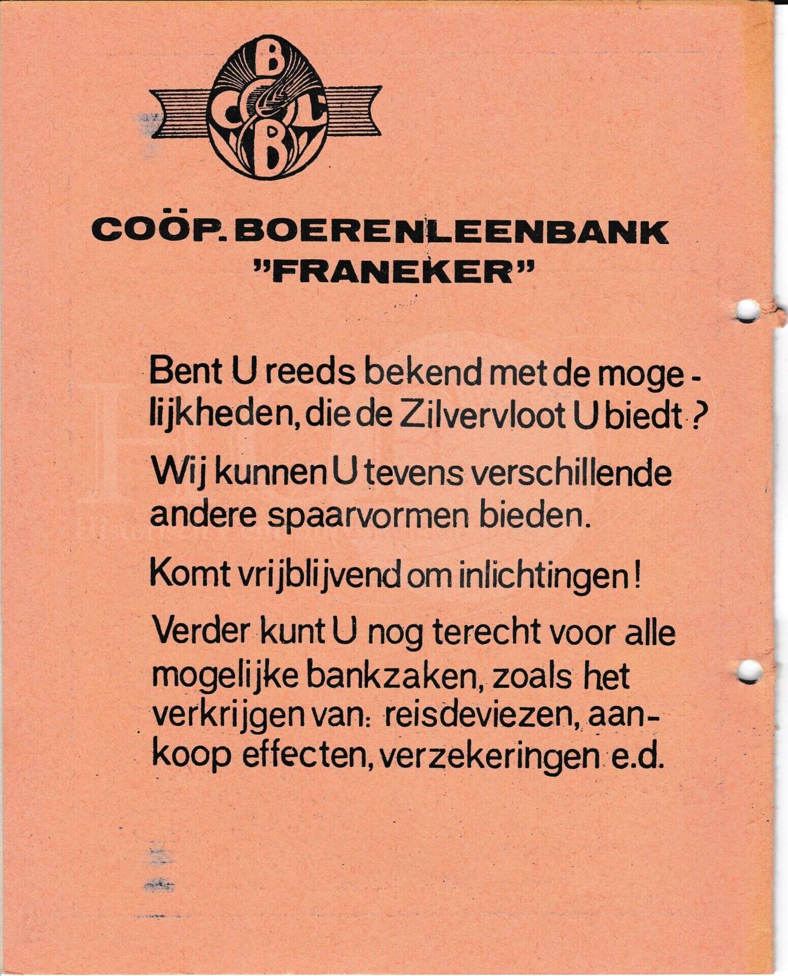 Beschrijving:It Fleurige Flittergat: 1966 3de jaargang nr. 1: Reklame: Coöperatieve Boerenleenbank Franeker