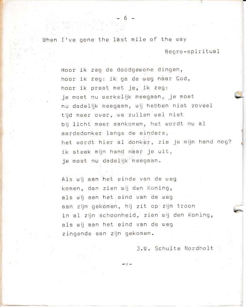 Beschrijving:It Fleurige Flittergat: 1966 3de jaargang nr. 6: Gedicht:When I'we gone the last mileof the way. J.W Schulte Nordholt