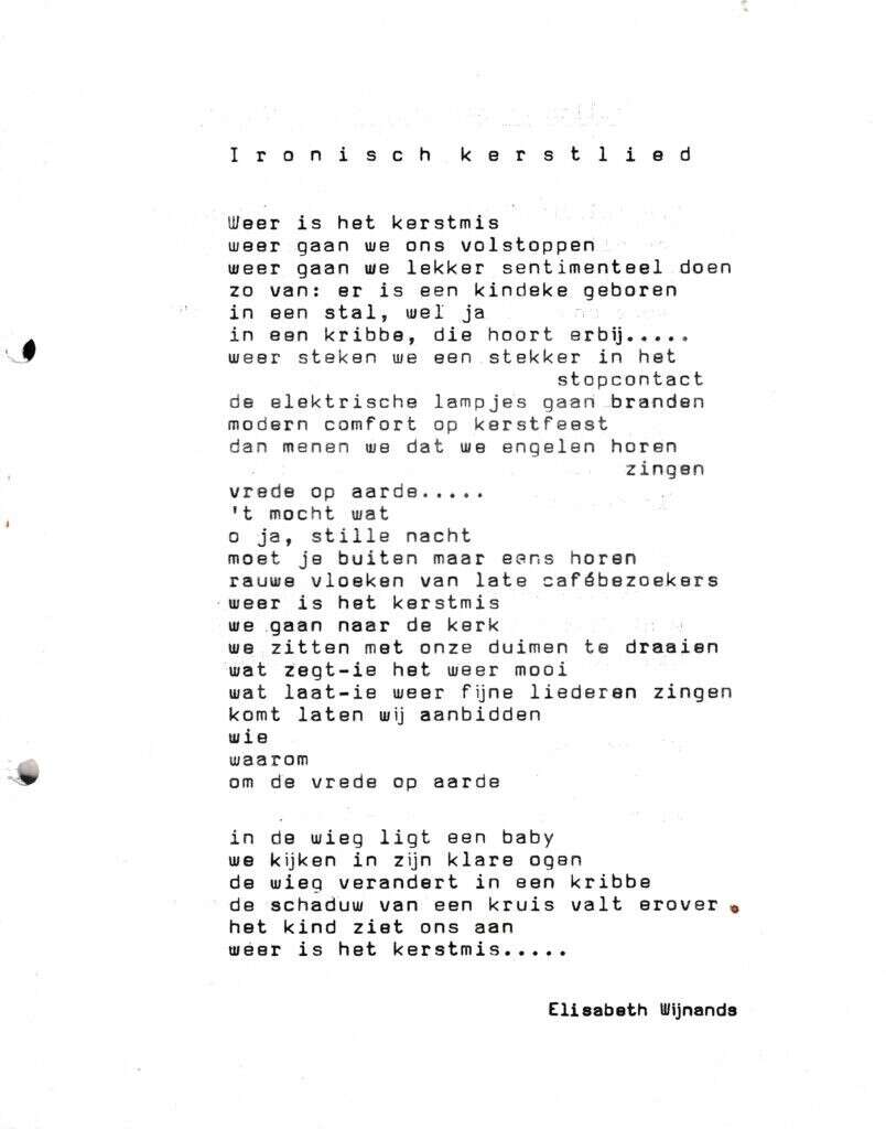 | Beschrijving: | It Fleurige Flittergat: 1966 3de jaargang nr. 8 kerst: Ironisch kerstlied ( Elisabeth Wijnands) |