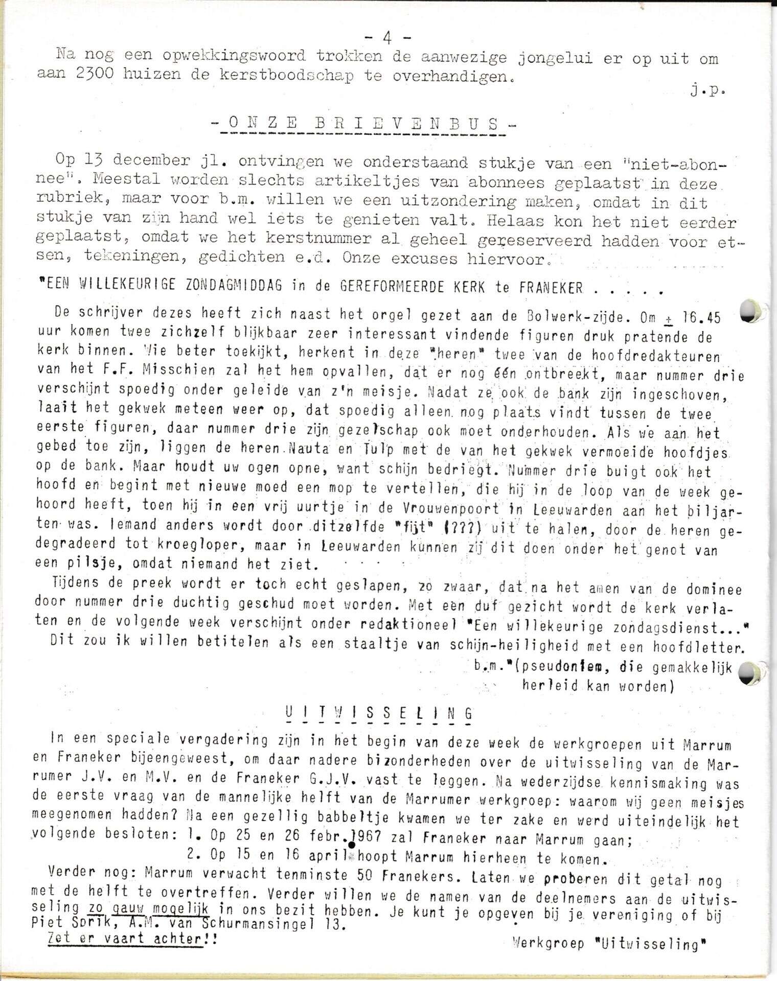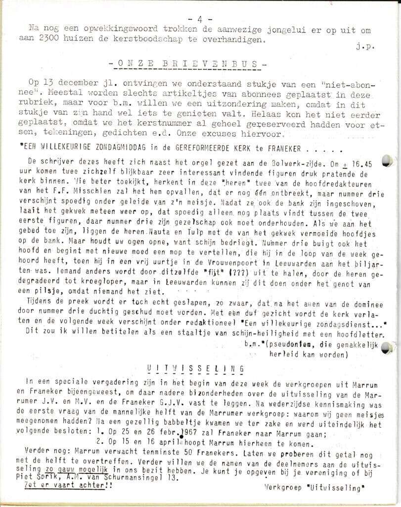 | Beschrijving: | It Fleurige Flittergat:1967 3de jaargang nr. 9: vervolg Oekomenisch kerst viering, Brievenbus, Uitwisseling G.J.V |