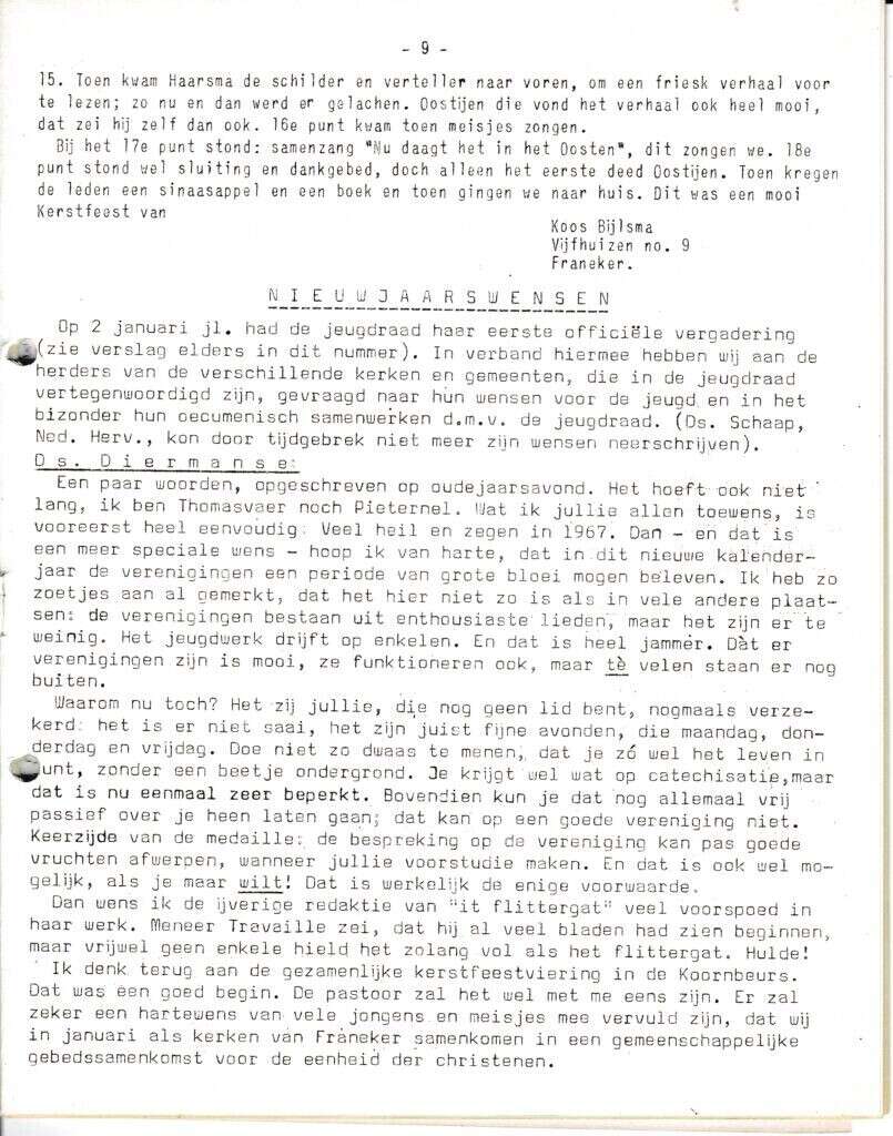Beschrijving:It Fleurige Flittergat:1967 3de jaargang nr. 9: vervolg G.J.O opstel wedstrijd, nieuwjaars wensen Ds, Diermanse