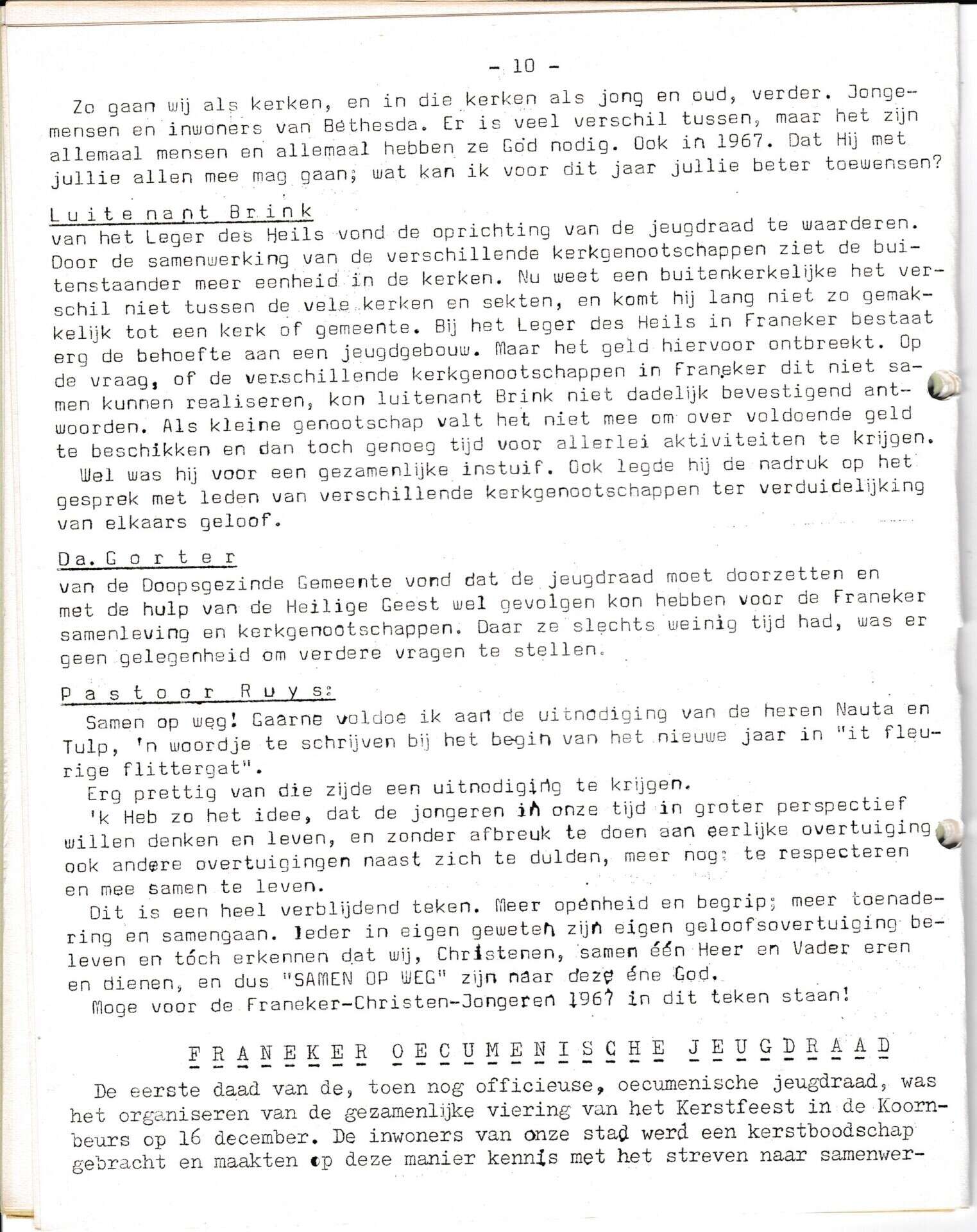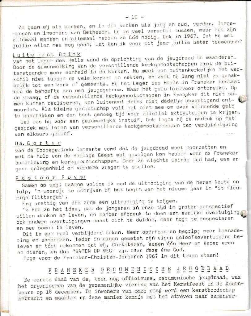 Beschrijving:It Fleurige Flittergat:1967 3de jaargang nr. 9: nieuwjaars wensen; Luitenand Brink, Da Gorter, Pastoor Ruys, Franeker Oecumenische jeugdraad