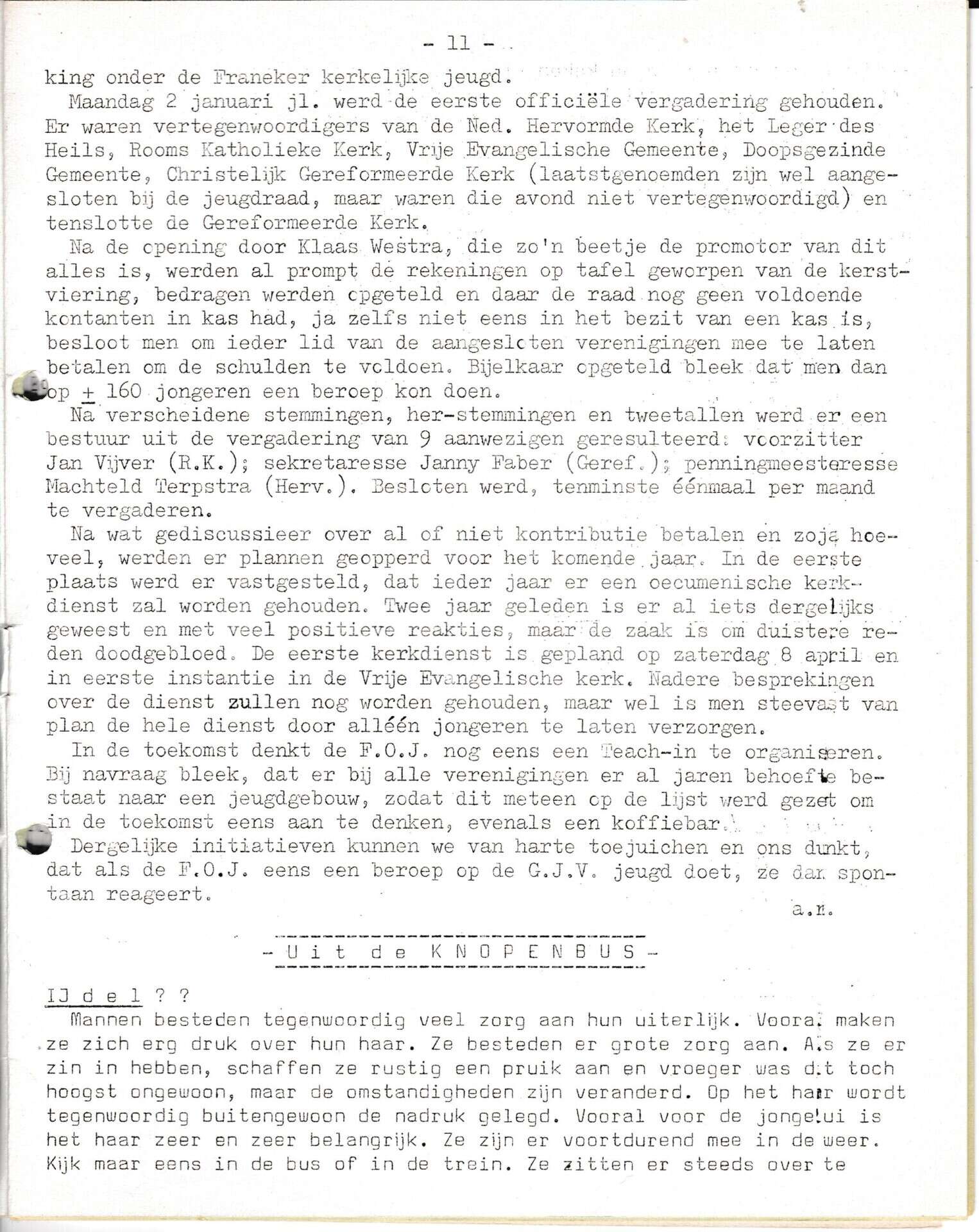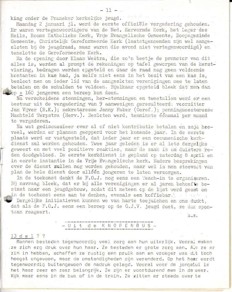 Beschrijving:It Fleurige Flittergat:1967 3de jaargang nr. 9: vervolg Franeker Oecumenische jeugdraad, Uit de Knopenbus (voorheen Vrouwenpraat en daarna De Tondeldoos)