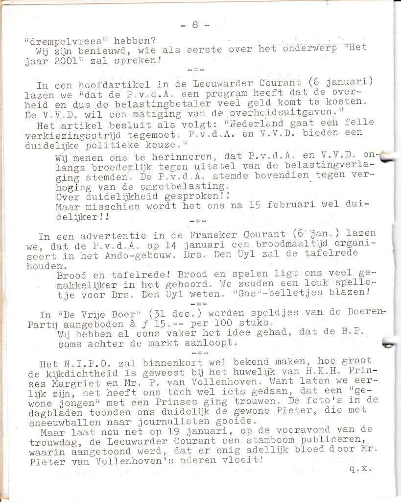 | Beschrijving: | It Fleurige Flittergat: 1967 3de jaargang nr. 10: vervolg Kommentaar, over de verkiezingen. |