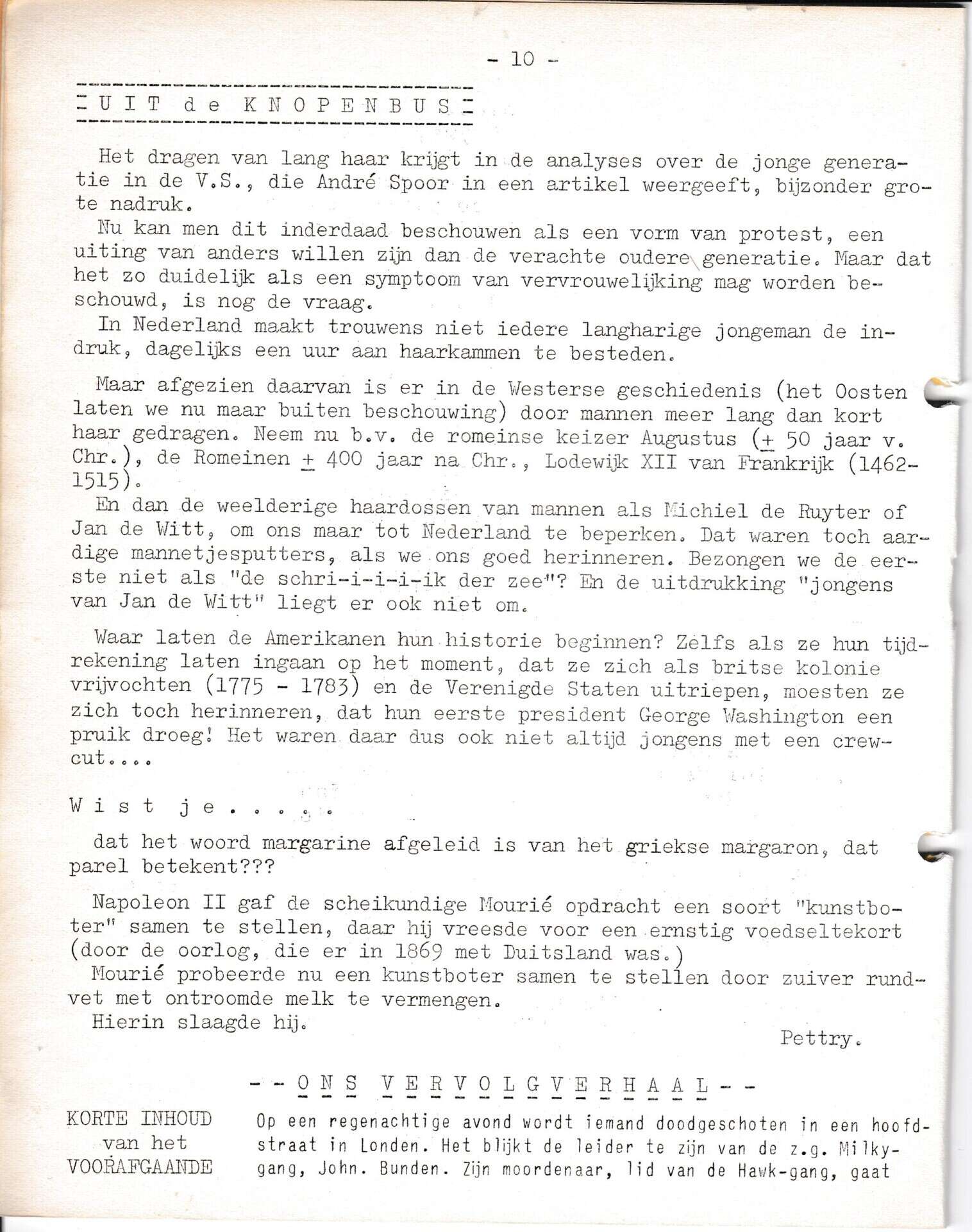 Beschrijving:It Fleurige Flittergat: 1967 3de jaargang nr. 10: Uit de Knopenbus (voorheen Vrouwenpraat en daarna De Tondeldoos). doorgeef verhaal
