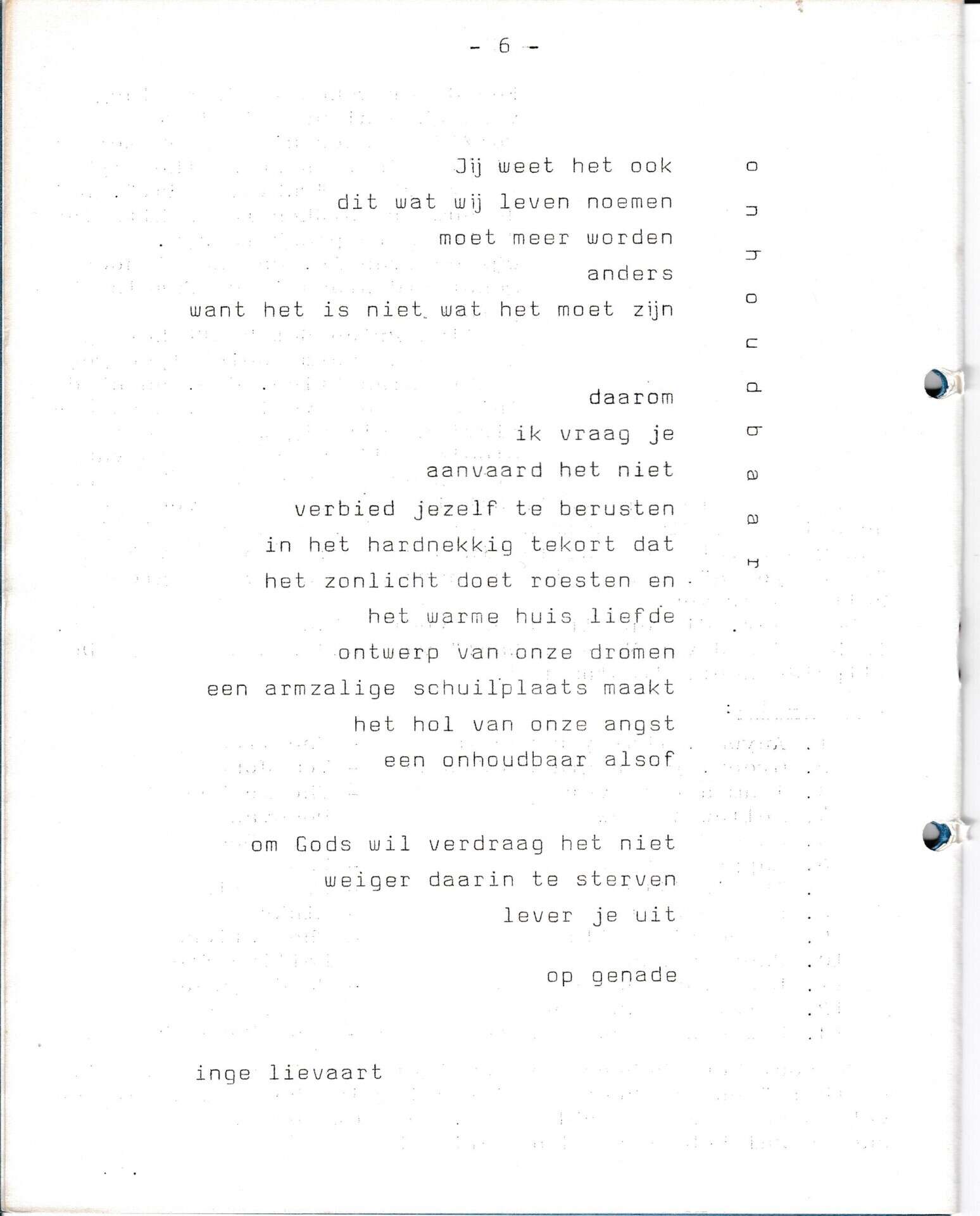 | Beschrijving: | It Fleurige Flittergat: 1967 3de jaargang nr. 11: gedicht; Onhoudbaar (Inge Lievaart) |
