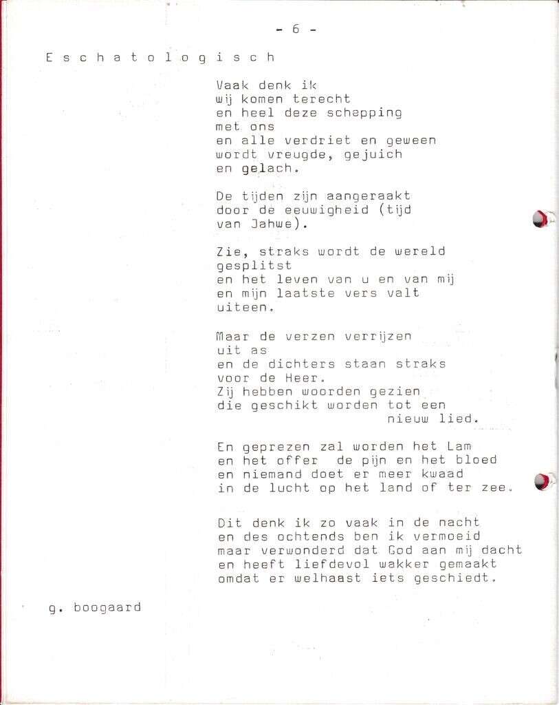 Beschrijving:It Fleurige Flittergat: 1967 3de jaargang nr. 12: gedicht; Eschatologisch (G. Bogaard)