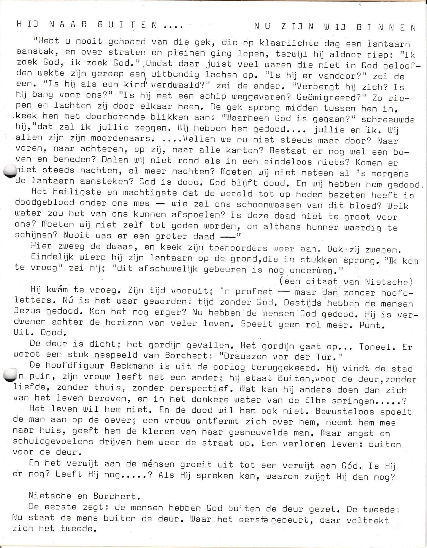 | Beschrijving: | It Fleurige Flittergat: 1967 3de jaargang nr. 14: Ds. A.d.v Kooy; Over Nietsche: Hij naar buiten … Nu zijn wij binnen. |