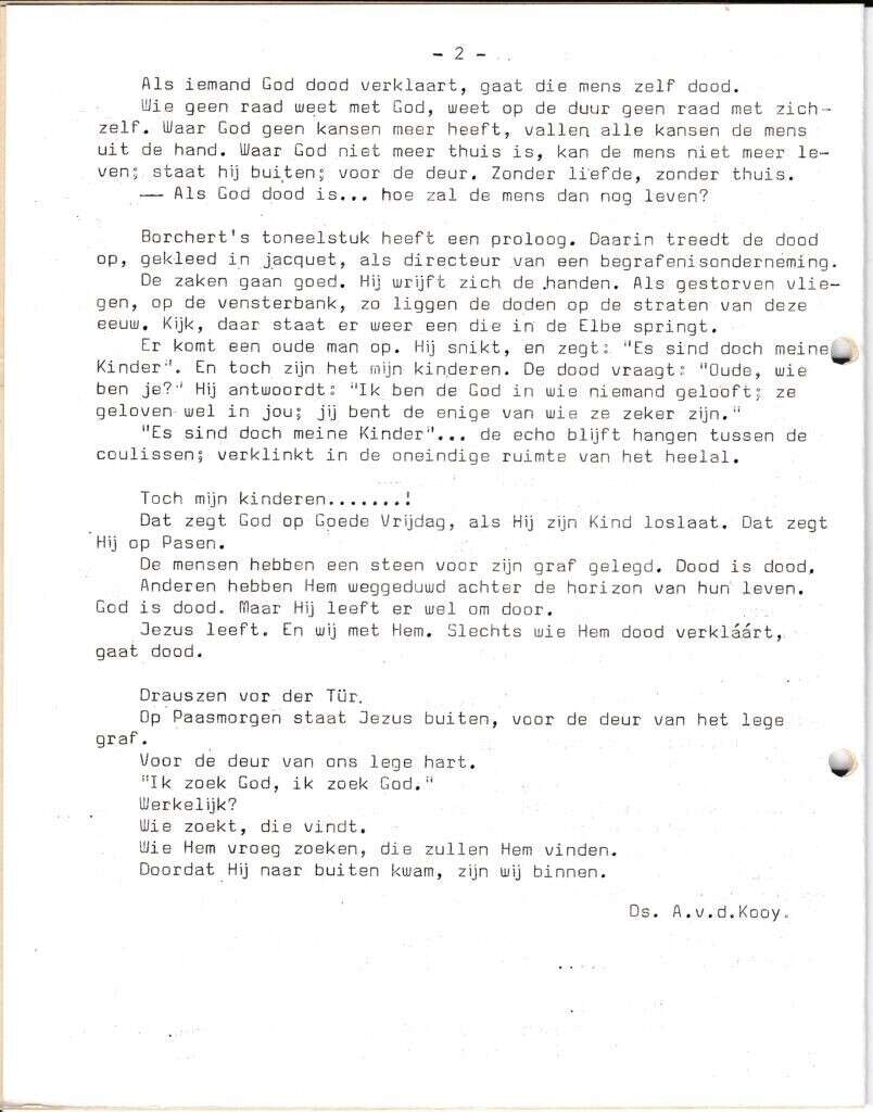 | Beschrijving: | It Fleurige Flittergat: 1967 3de jaargang nr. 14: vervolg Ds. A.d.v Kooy; Over Nietsche: Hij naar buiten … Nu zijn wij binnen. |