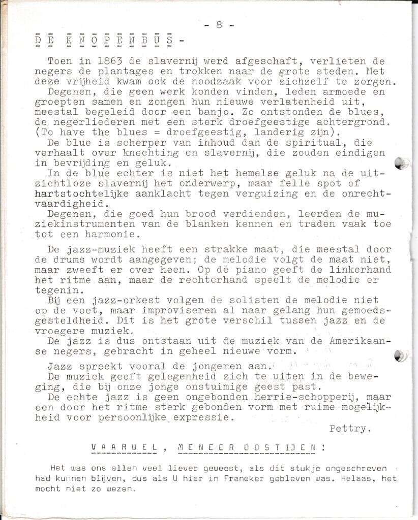 | Beschrijving: | It Fleurige Flittergat: 1967 3de jaargang nr. 17: Uit de Knopenbus (voorheen Vrouwenpraat en daarna De Tondeldoos) Muziek; Jazz. Vaarwel meneer Oostijen. |