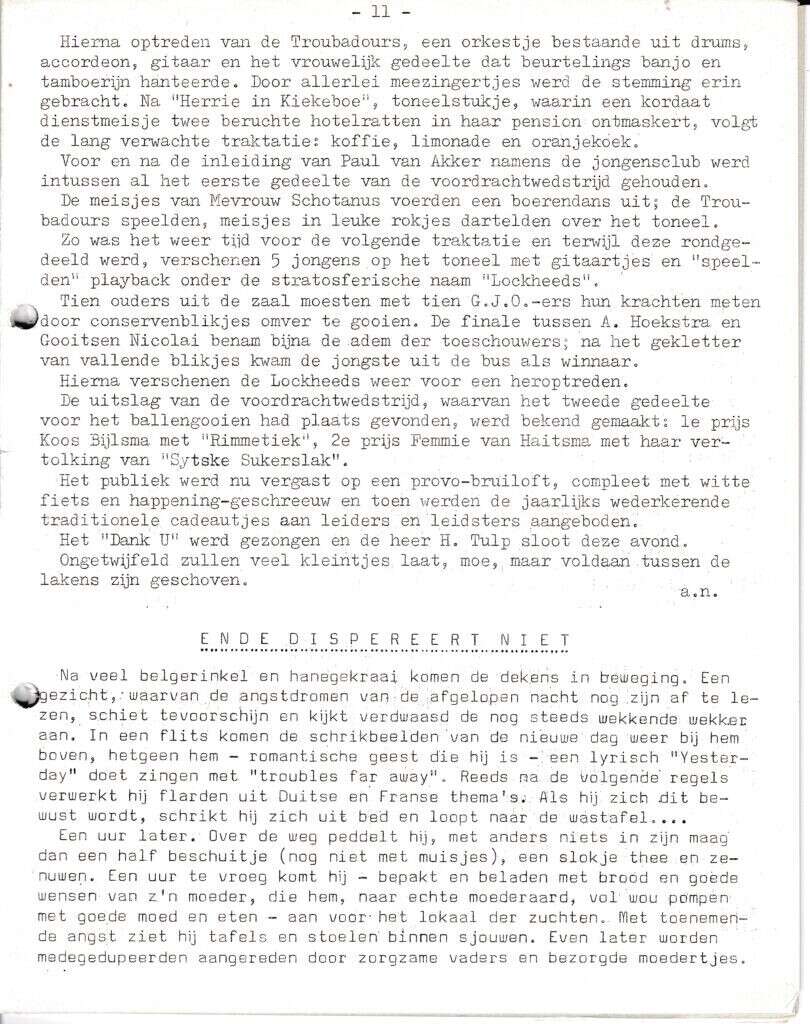 Beschrijving:It Fleurige Flittergat: 1967 3de jaargang nr. 17: vervolg Jaarfeest G.J.O. Ende Dipereert niet