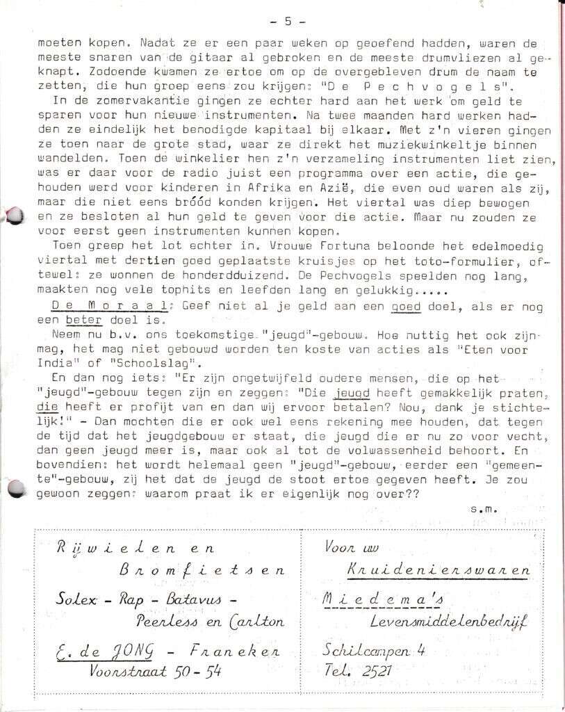 | Beschrijving: | It Fleurige Flittergat: 1967 3de jaargang nr. 19: vervolg Vergeet door de bomen het bos niet. Reklame; E.de Jong rijwielen en bromfietsen Voorstraat 50-54, Miedema Kruidenier Schilcampen 4 |