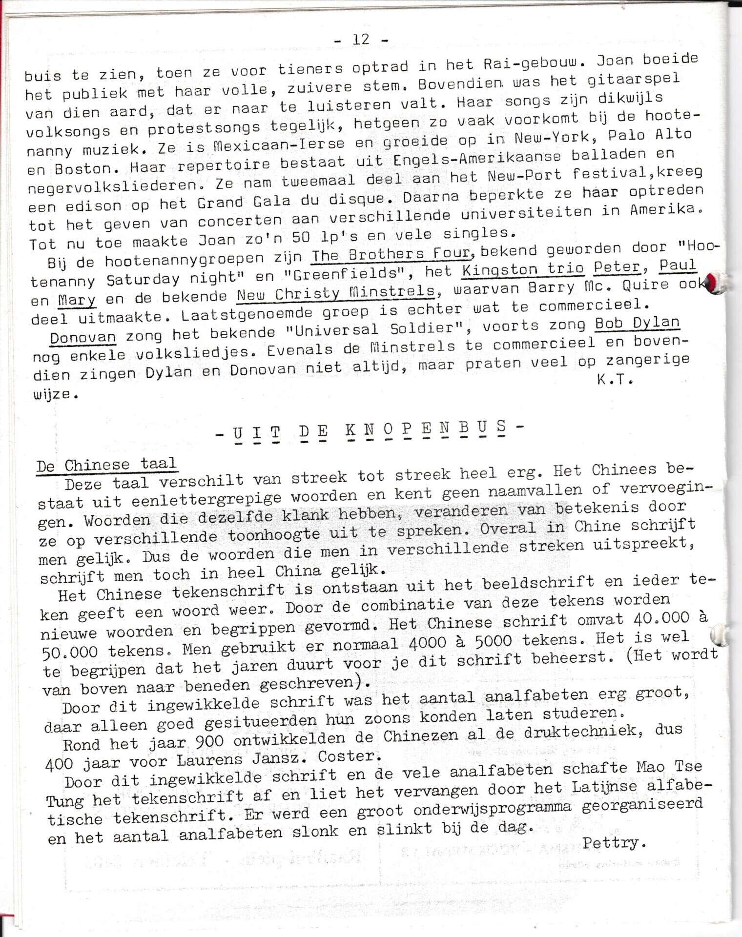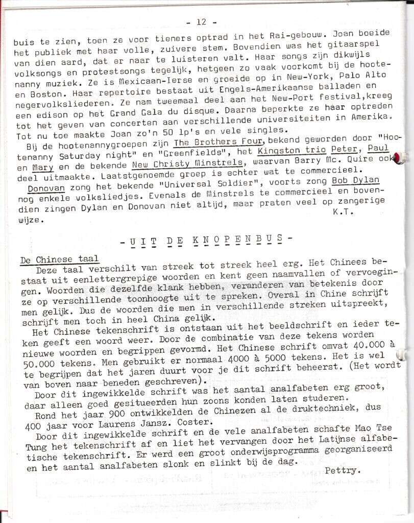 Beschrijving:It Fleurige Flittergat: 1967 3de jaargang nr. 19: vervolg Hootenanny-muziek. Uit de Knopenbus (voorheen Vrouwenpraat en daarna De Tondeldoos); de Chinese taal