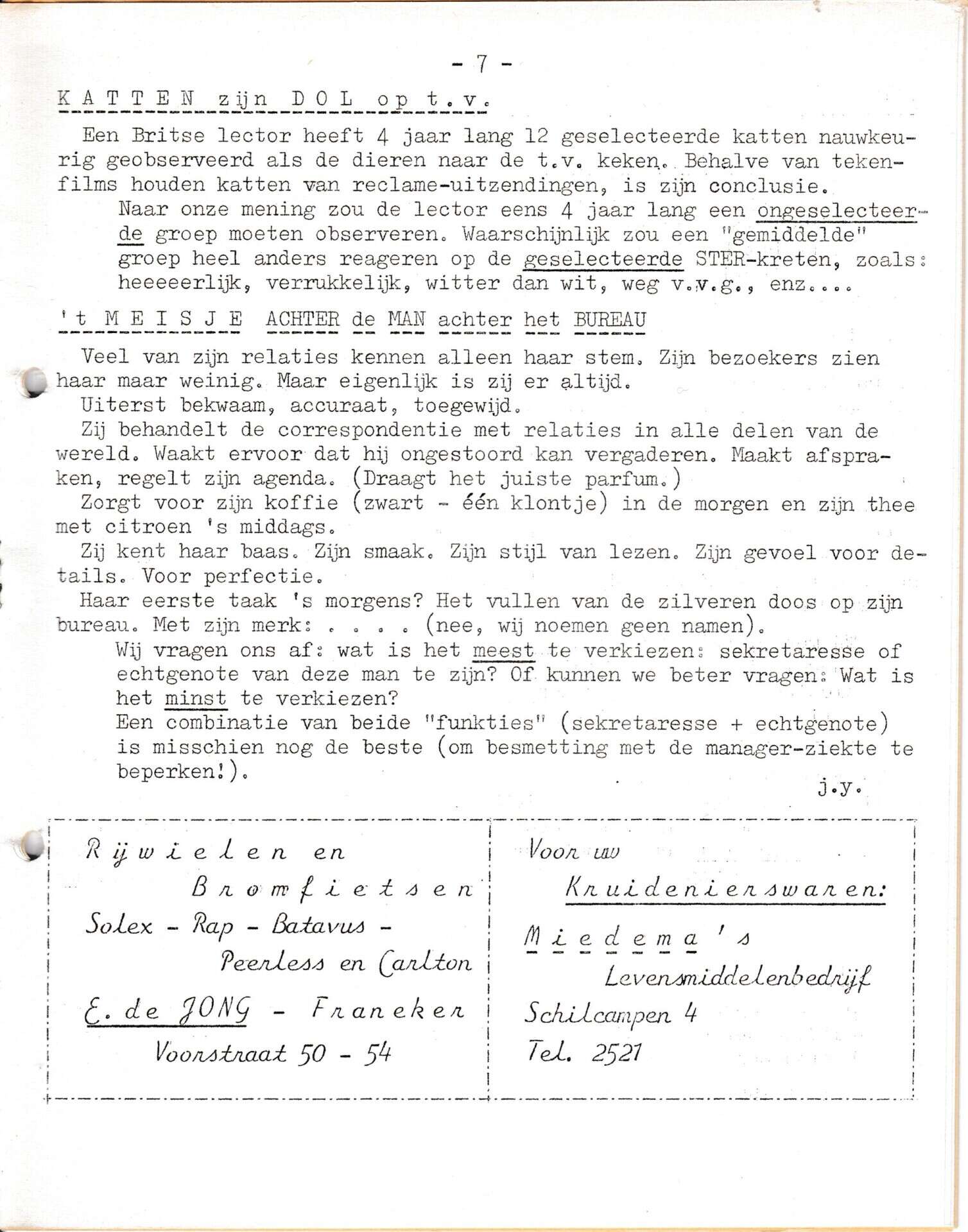 | Beschrijving: | It Fleurige Flittergat: 1967 3de jaargang nr. 22: verhaaltje; Katten houden van TV en Secretaresse |
