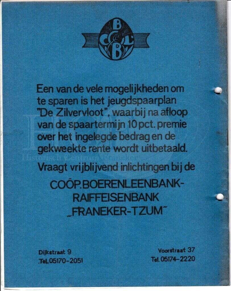 | Beschrijving: | It Fleurige Flittergat: 1967 4de jaargang nr. 1: Coöperatieve Boerenleenbank Franeker, Zilvervloot sparen |