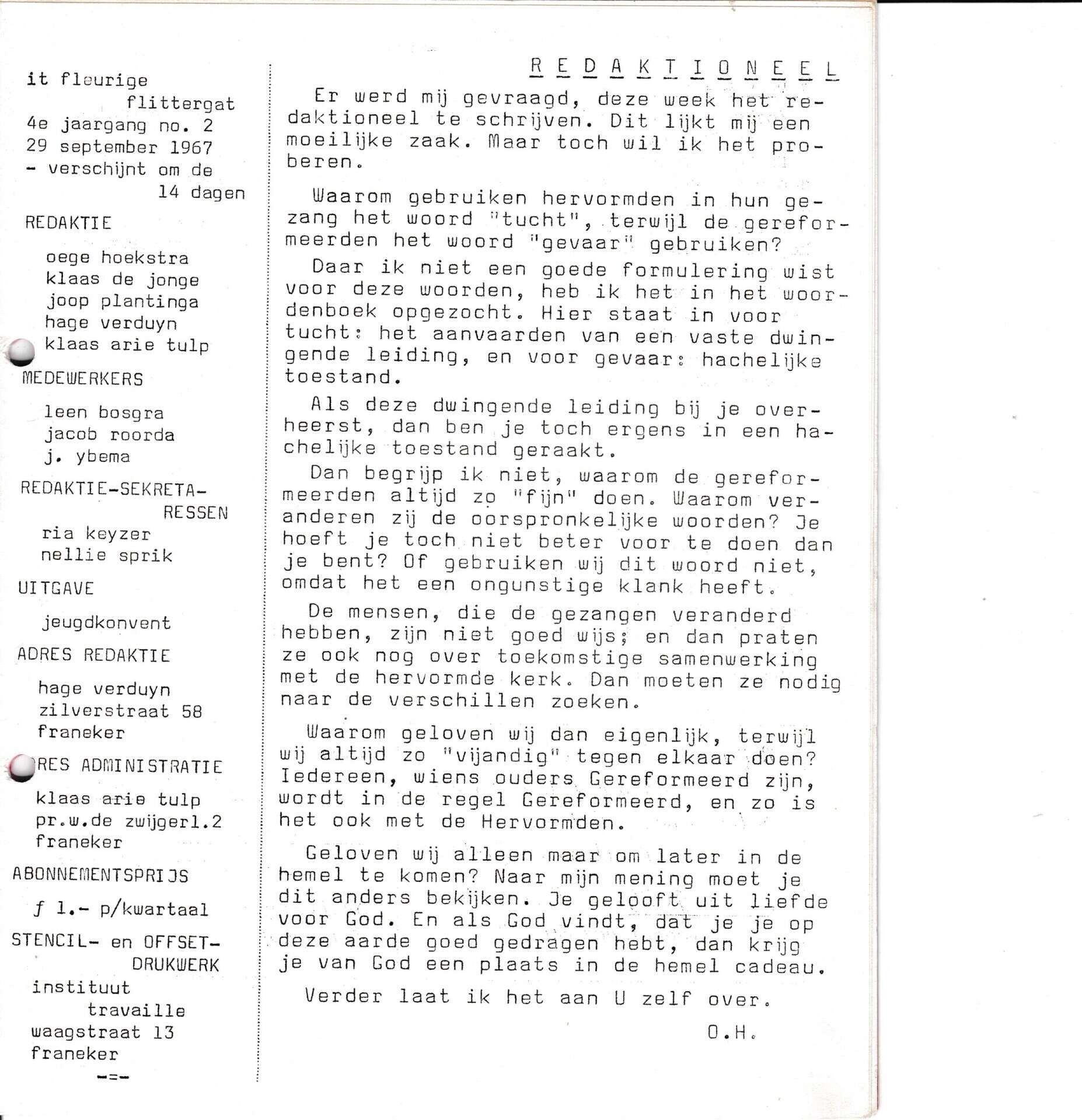 | Beschrijving: | It Fleurige Flittergat: 1967 4de jaargang nr. 2: Redactioneel: Tucht en gevaar |