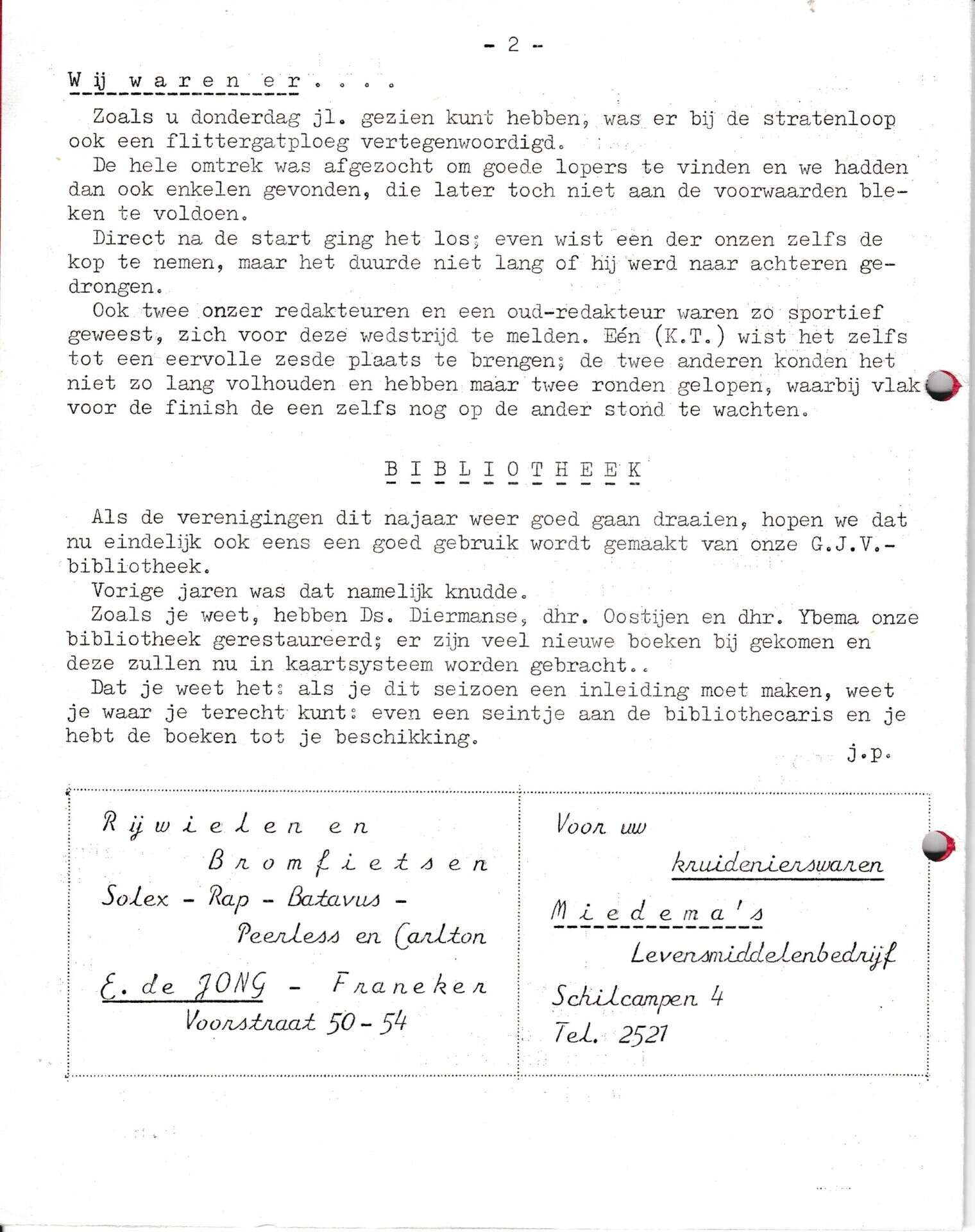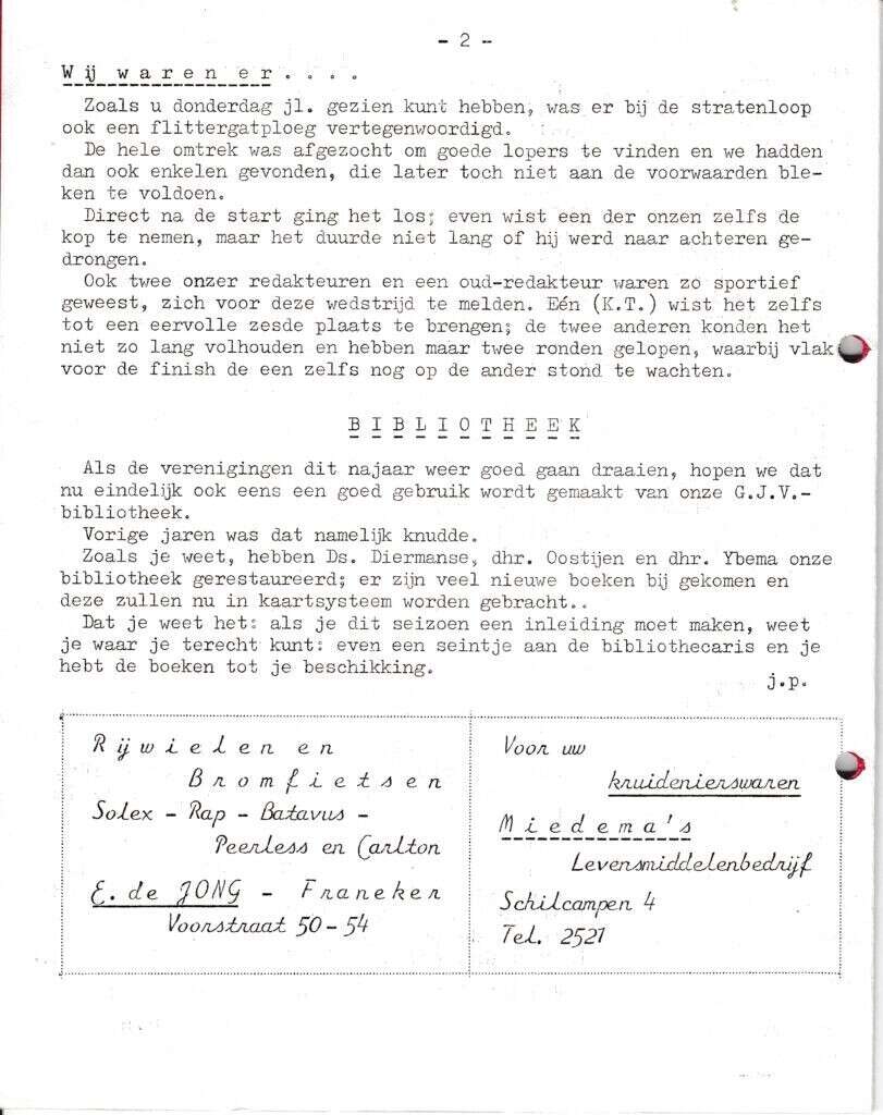 | Beschrijving: | It Fleurige Flittergat: 1967 4de jaargang nr. 2: Flittergat stratenloop, G,J,V, bibliotheek. |