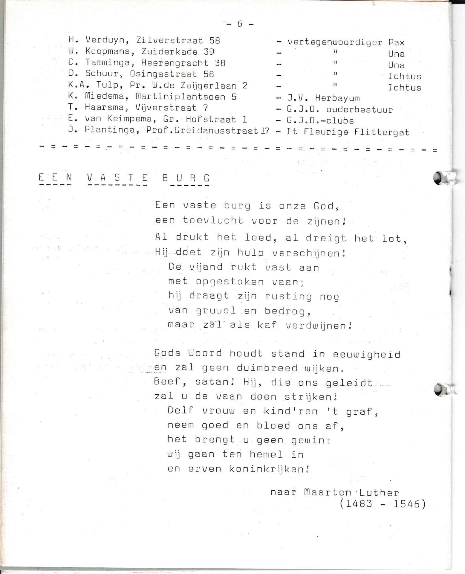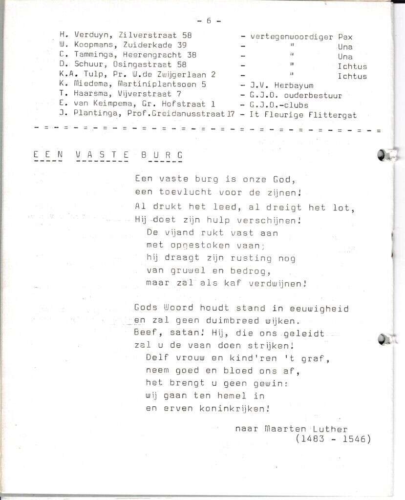 | Beschrijving: | It Fleurige Flittergat: 1967 4de jaargang nr. 4: vervolg Samenstelling Jeugdkonvent. Gedicht; Een vaste brug. (naar Marten Luther) |