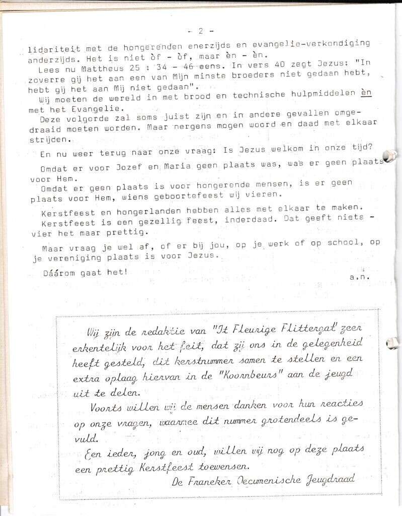Beschrijving:It Fleurige Flittergat: 1967 4de jaargang nr. 8 kerst: vervolg Redactioneel: Kale Kerst?