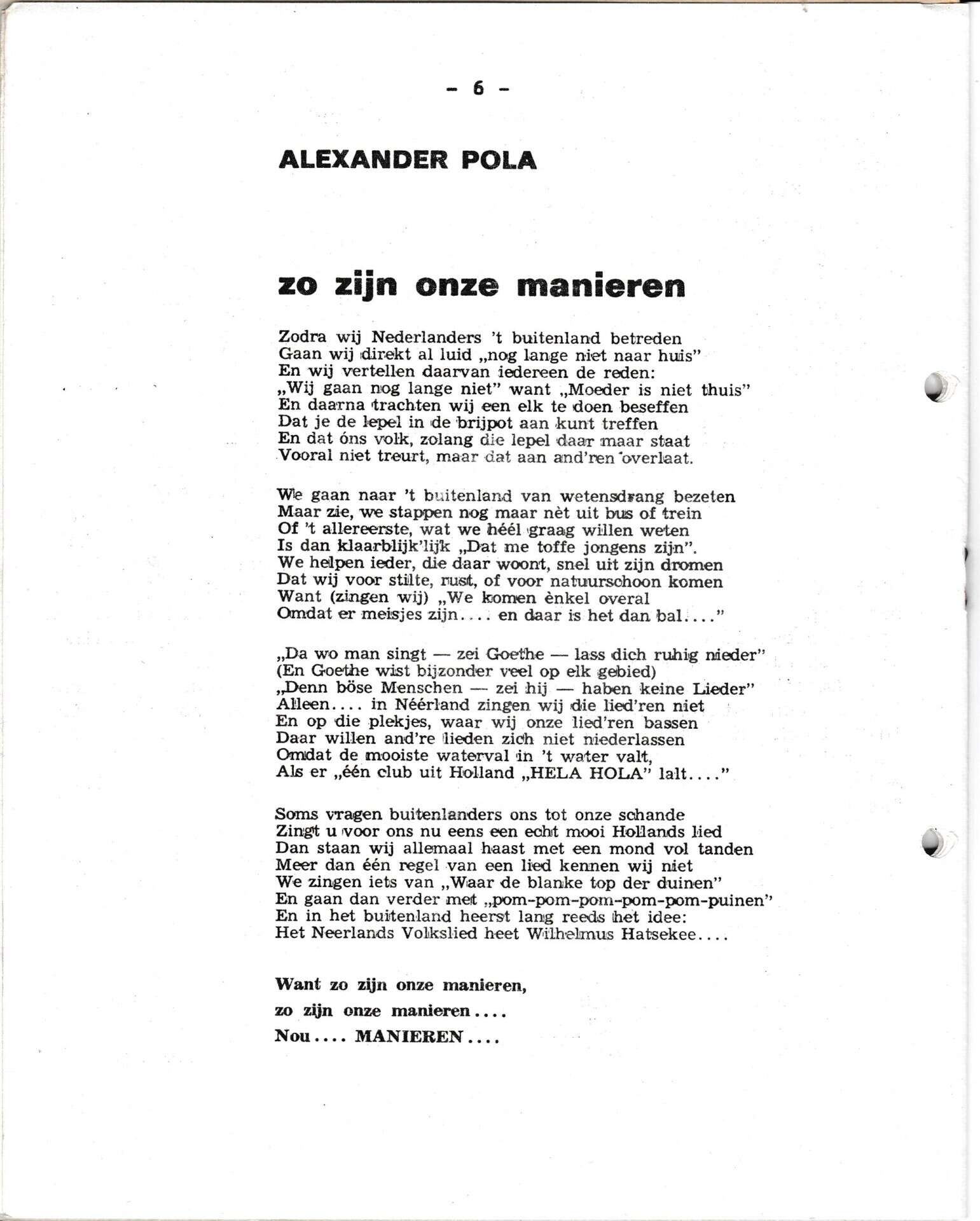 | Beschrijving: | It Fleurige Flittergat: 1968 4de jaargang nr. 10: Lied: Alexander Pola; zo zijn onze manieren. |