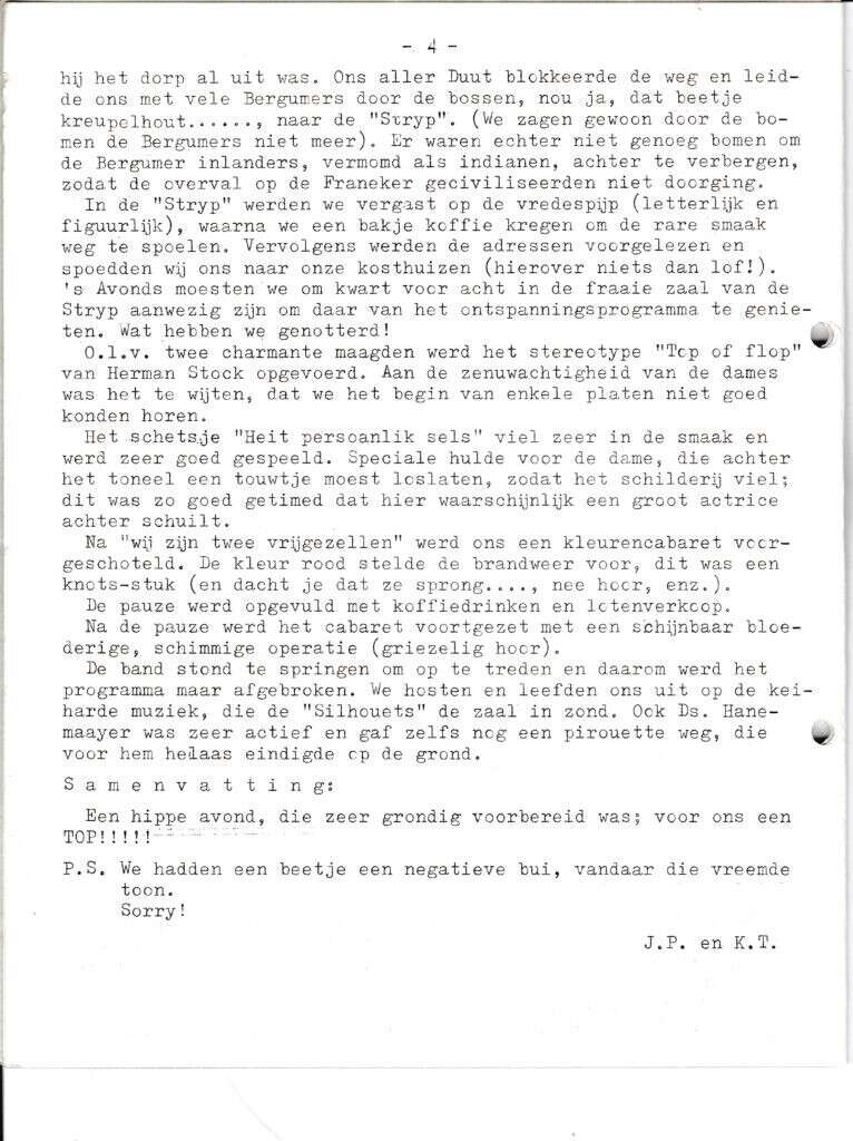 Beschrijving:It Fleurige Flittergat: 1968 4de jaargang nr. 12: vervolg Top of Flop; uitwisseling Bergum.