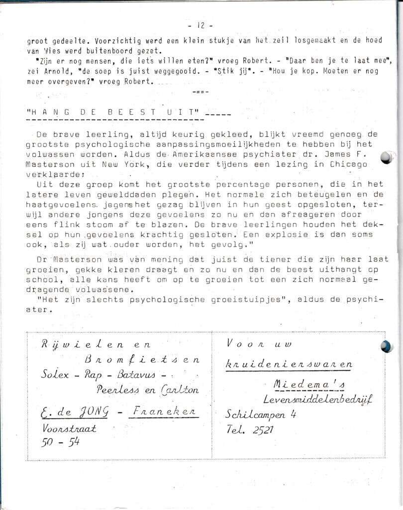 Beschrijving:It Fleurige Flittergat: 1968 4de jaargang nr. 14: Hang de beest uit. Reklame; E.de Jong rijwielen en bromfietsen Voorstraat 50-54, Miedema Kruidenier Schilcampen 4.