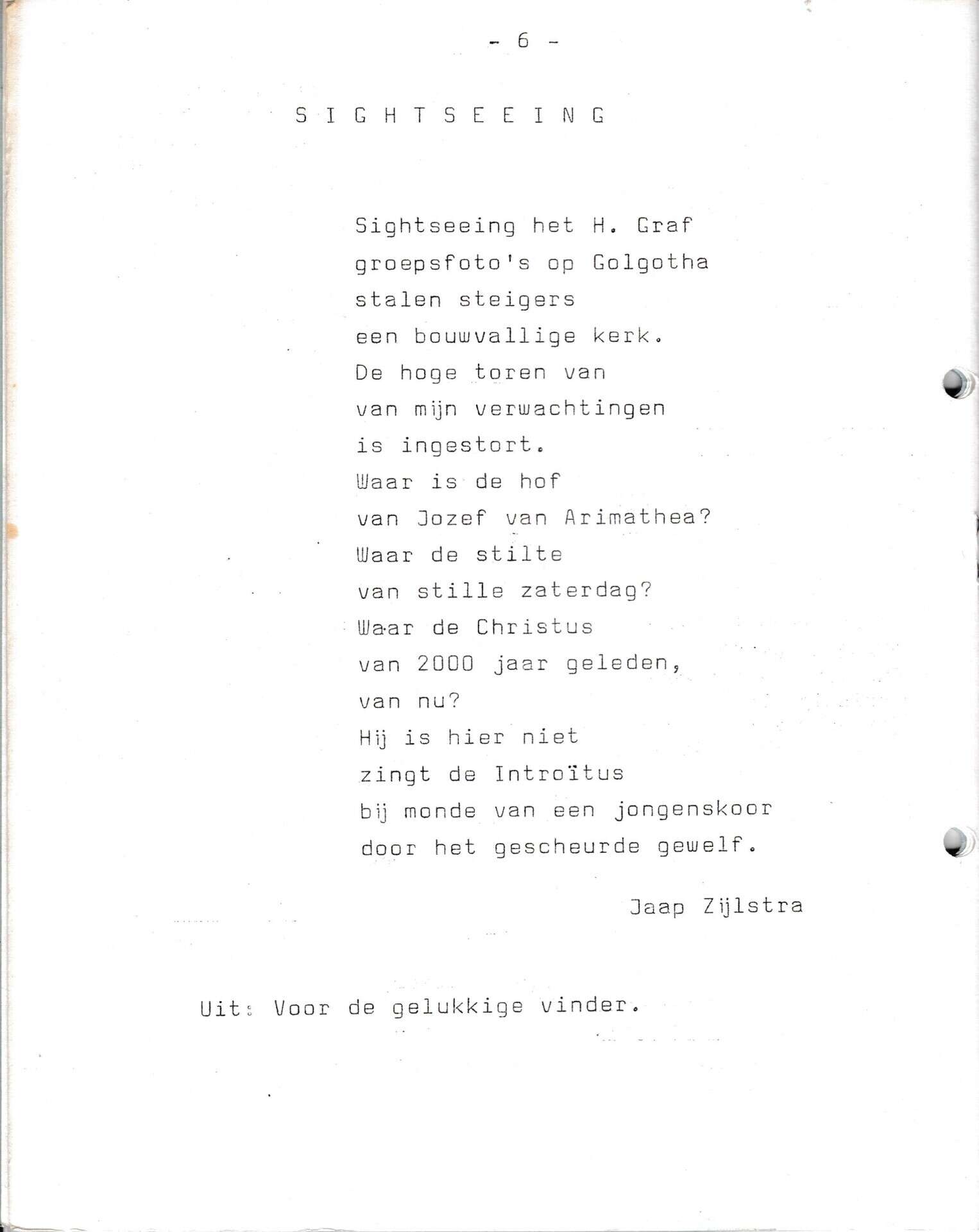 | Beschrijving: | It Fleurige Flittergat: 1968 4de jaargang nr. 15: Gedicht: Sightseeing (Uit de gelukkige vinder) |