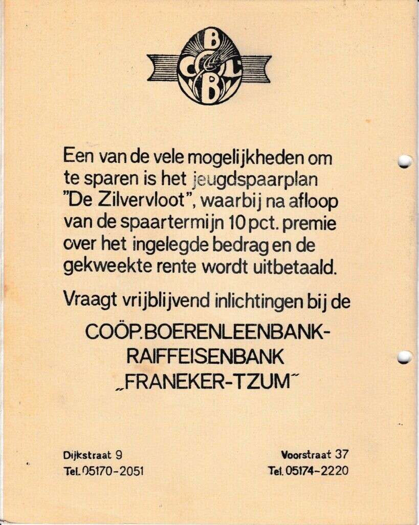 Beschrijving:It Fleurige Flittergat: 1968 4de jaargang nr. 16: Coöperatieve Boerenleenbank Franeker, Zilvervloot sparen