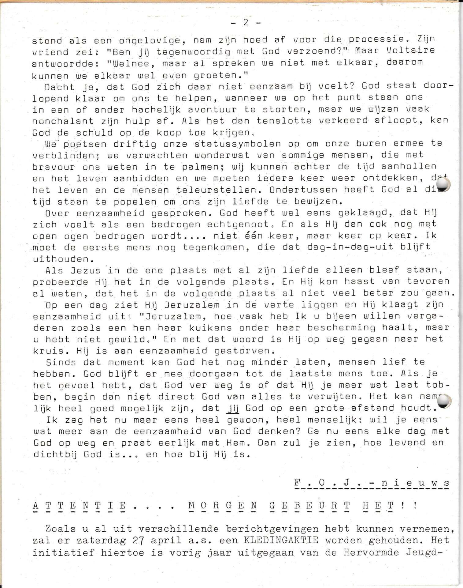 Beschrijving:It Fleurige Flittergat: 1968 4de jaargang nr. 17: vervolg Redactioneel: Gods eenzaamheid. F.O.J. nieuws; Kleding actie