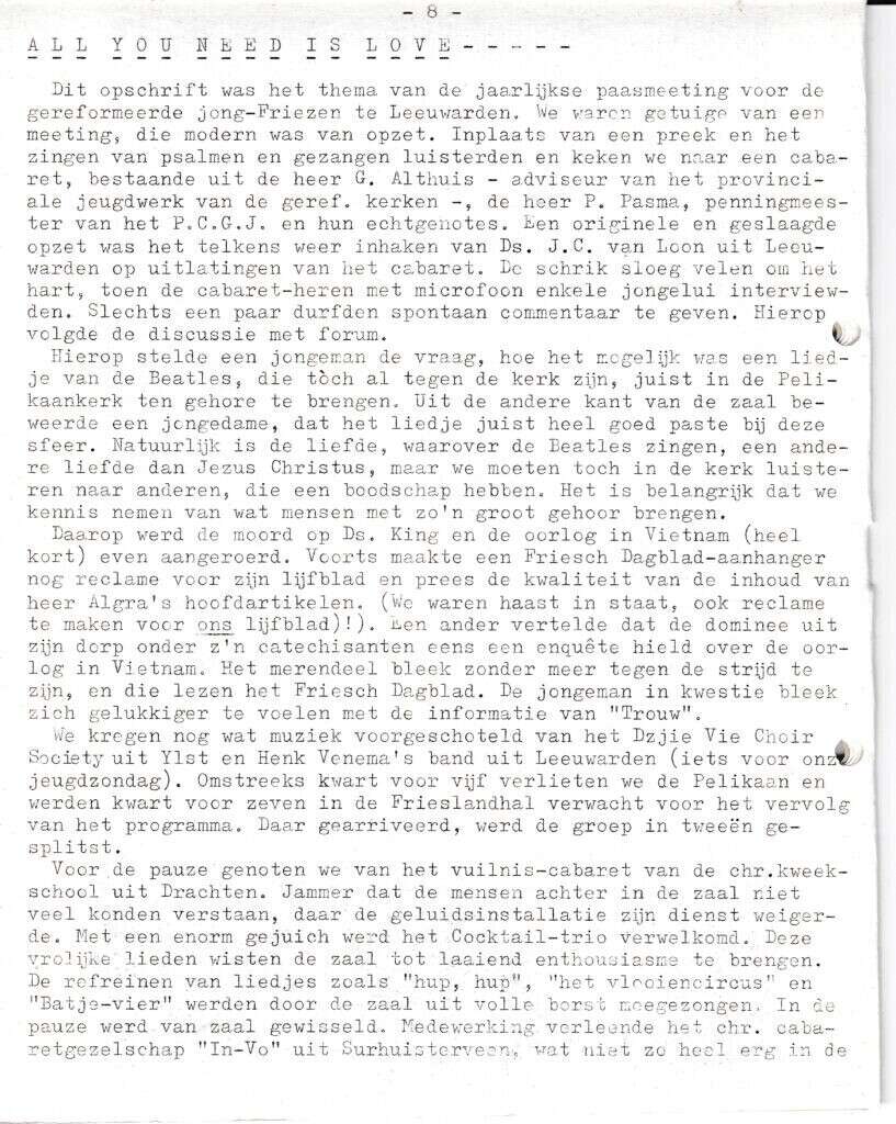 Beschrijving:It Fleurige Flittergat: 1968 4de jaargang nr. 17: All you need is love.